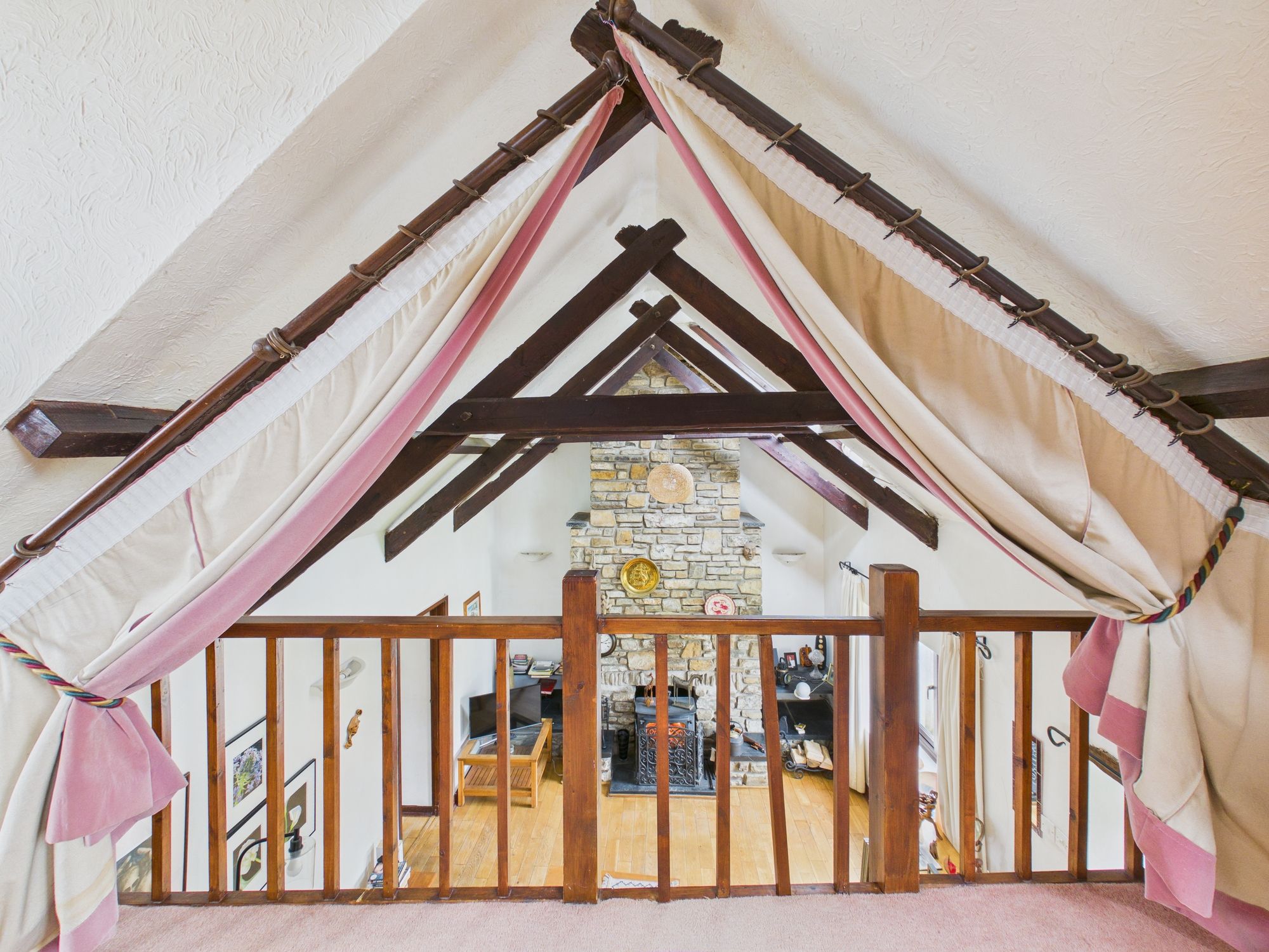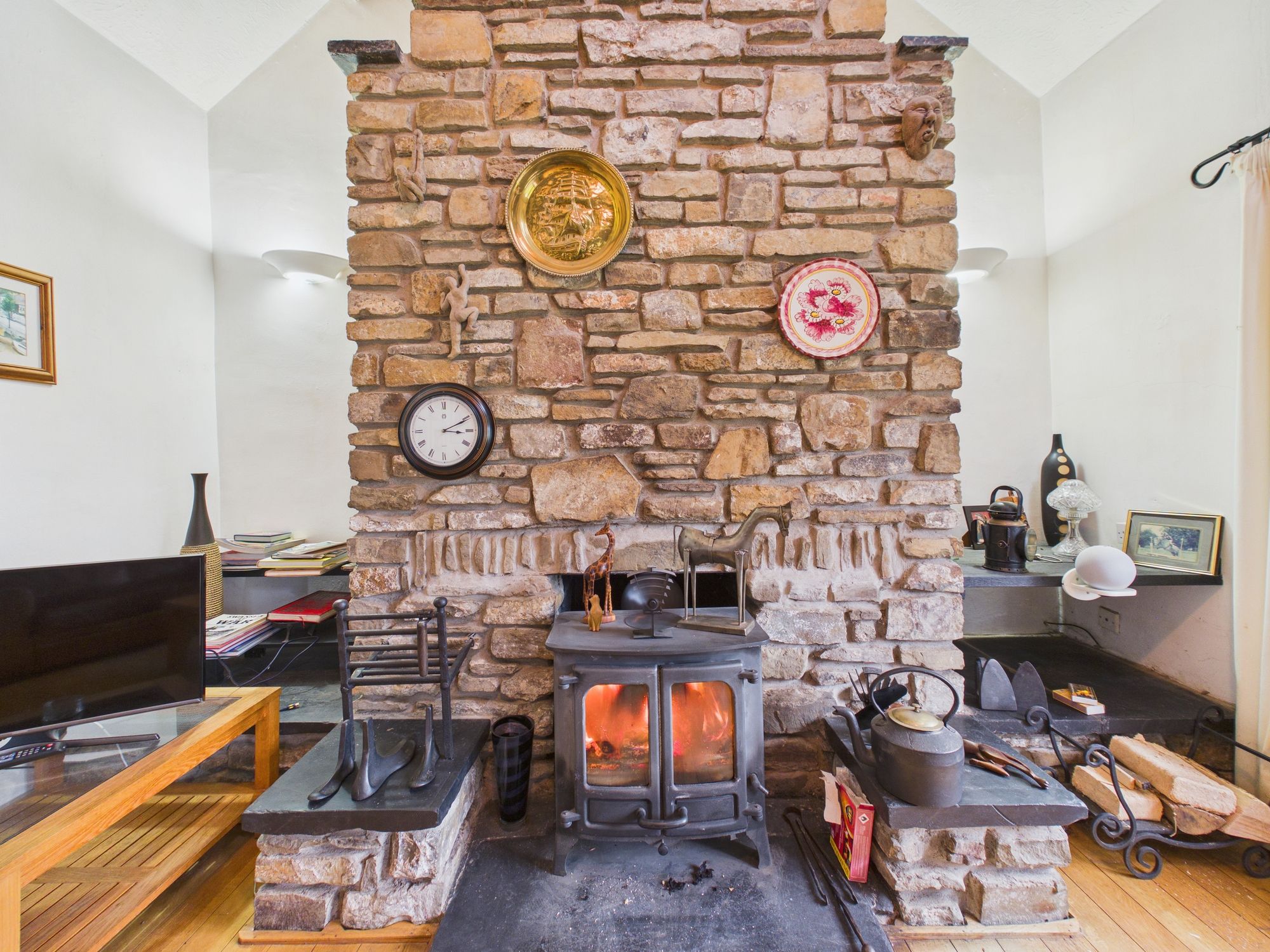- Log Burner Set in Stone Fireplace
