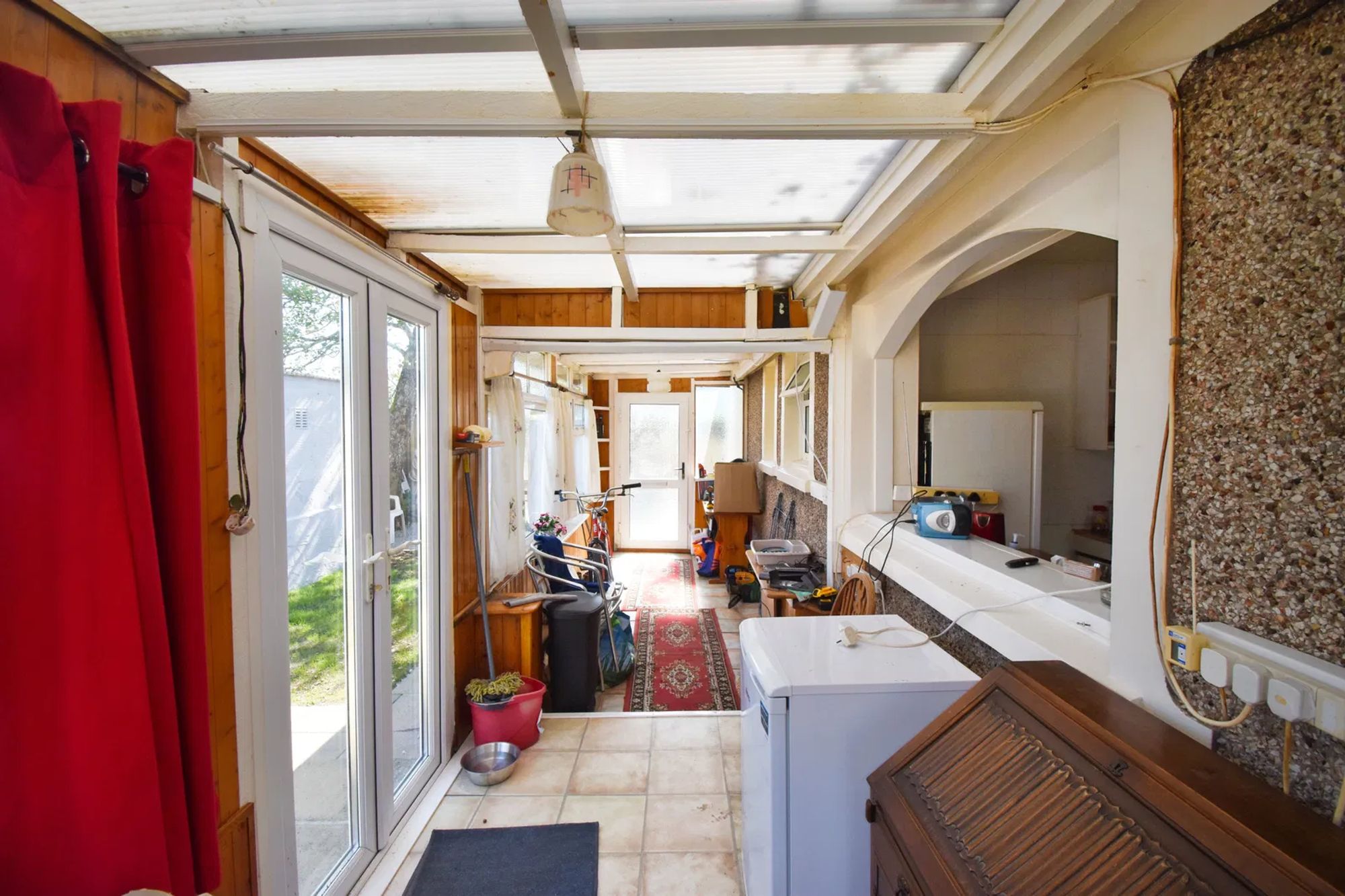 Lean-to Conservatory with French doors to rear and uPVC door to side. Glazed to side and rear. Polycarbonate roof.