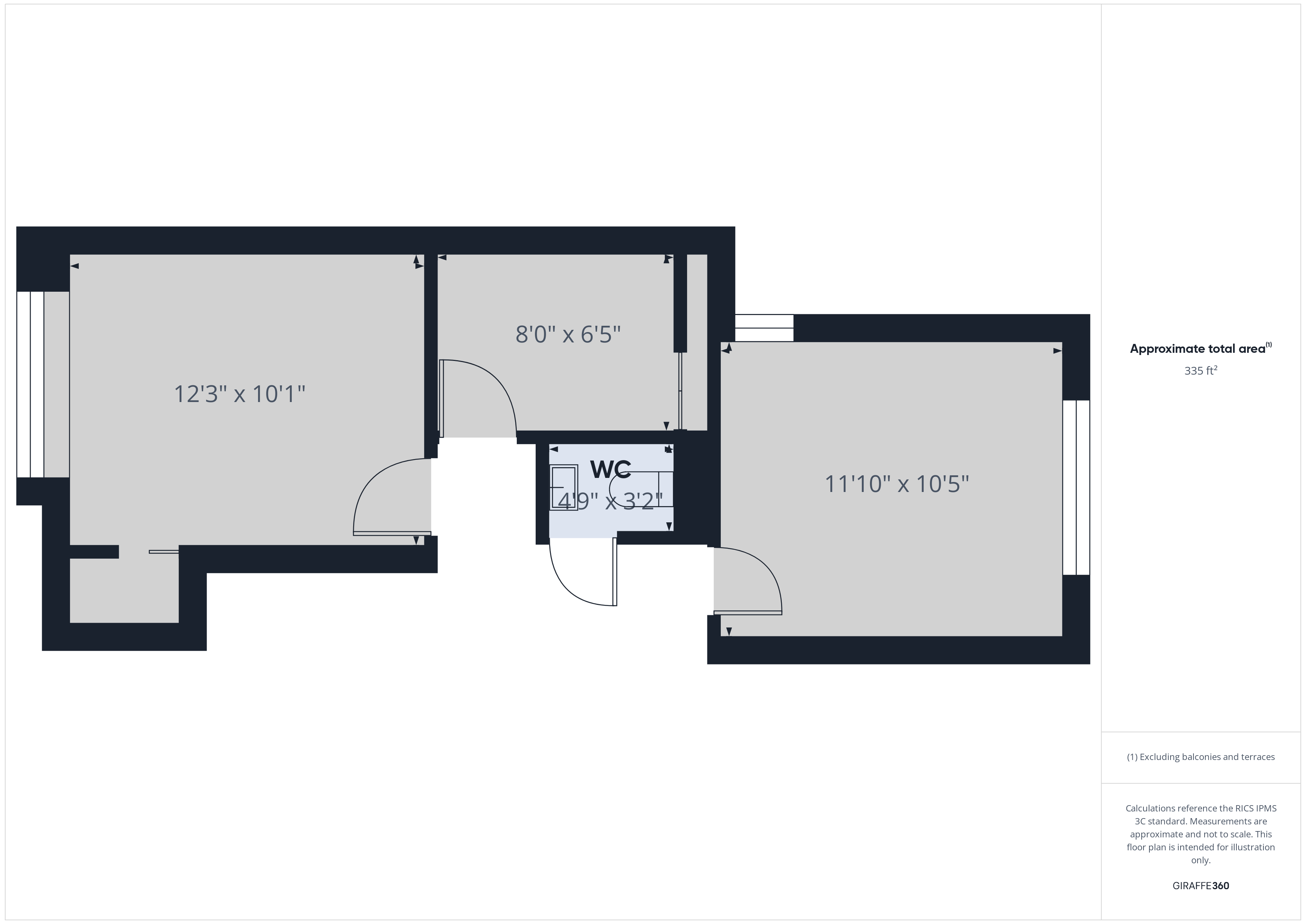 Bedroom 1 12' 3" x 10' 1" (3.73m x 3.07m)