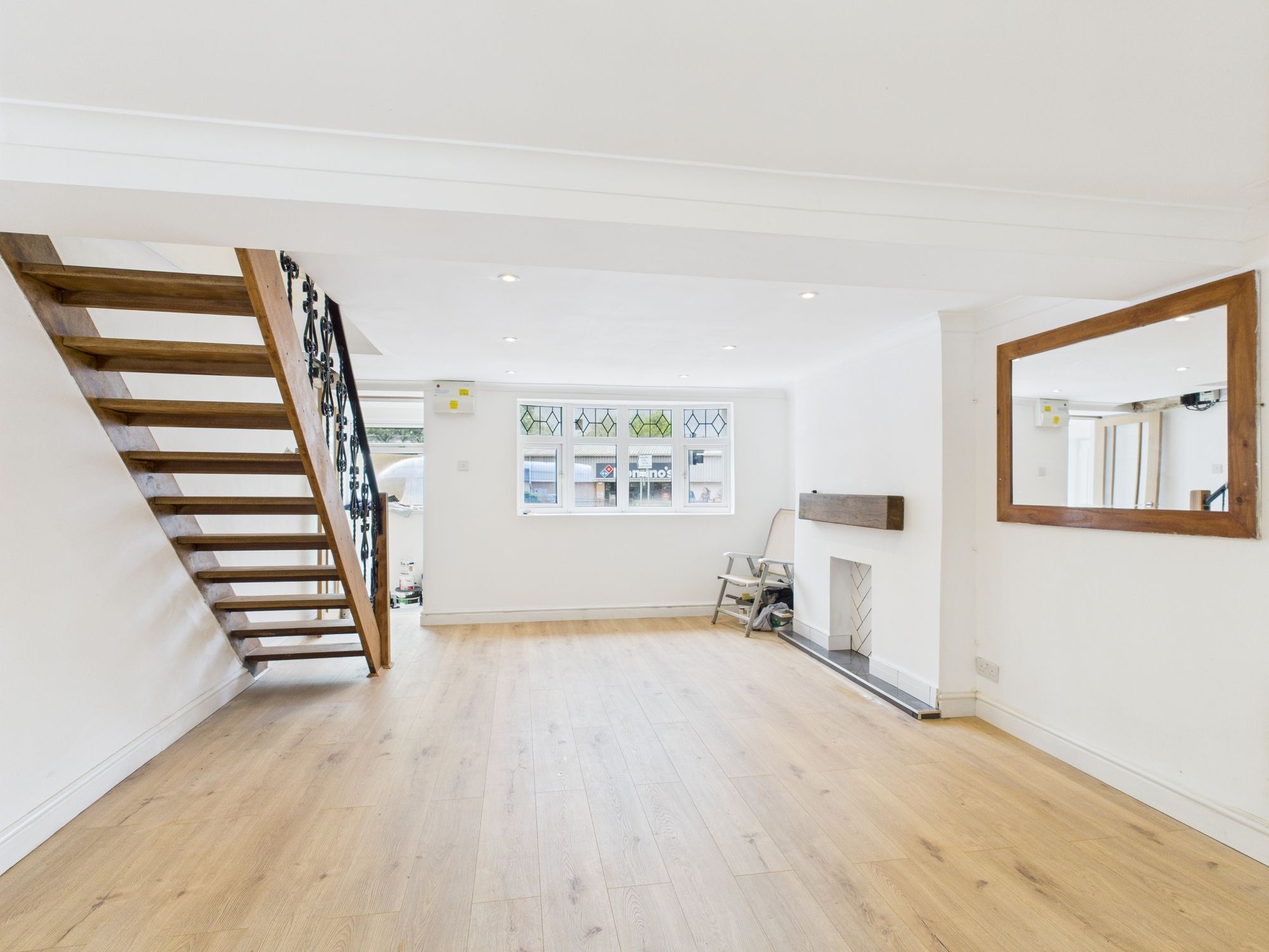 The ground floor boasts a spacious living room, flooded with natural light, creating a welcoming space for relaxation and entertainment. The neutral colour palette accentuates the generously sized room, providing a versatile canvas for personalisation. The separate dining area provides an ideal setting for intimate meals with loved ones or hosting gatherings, seamlessly flowing into the well-appointed kitchen.