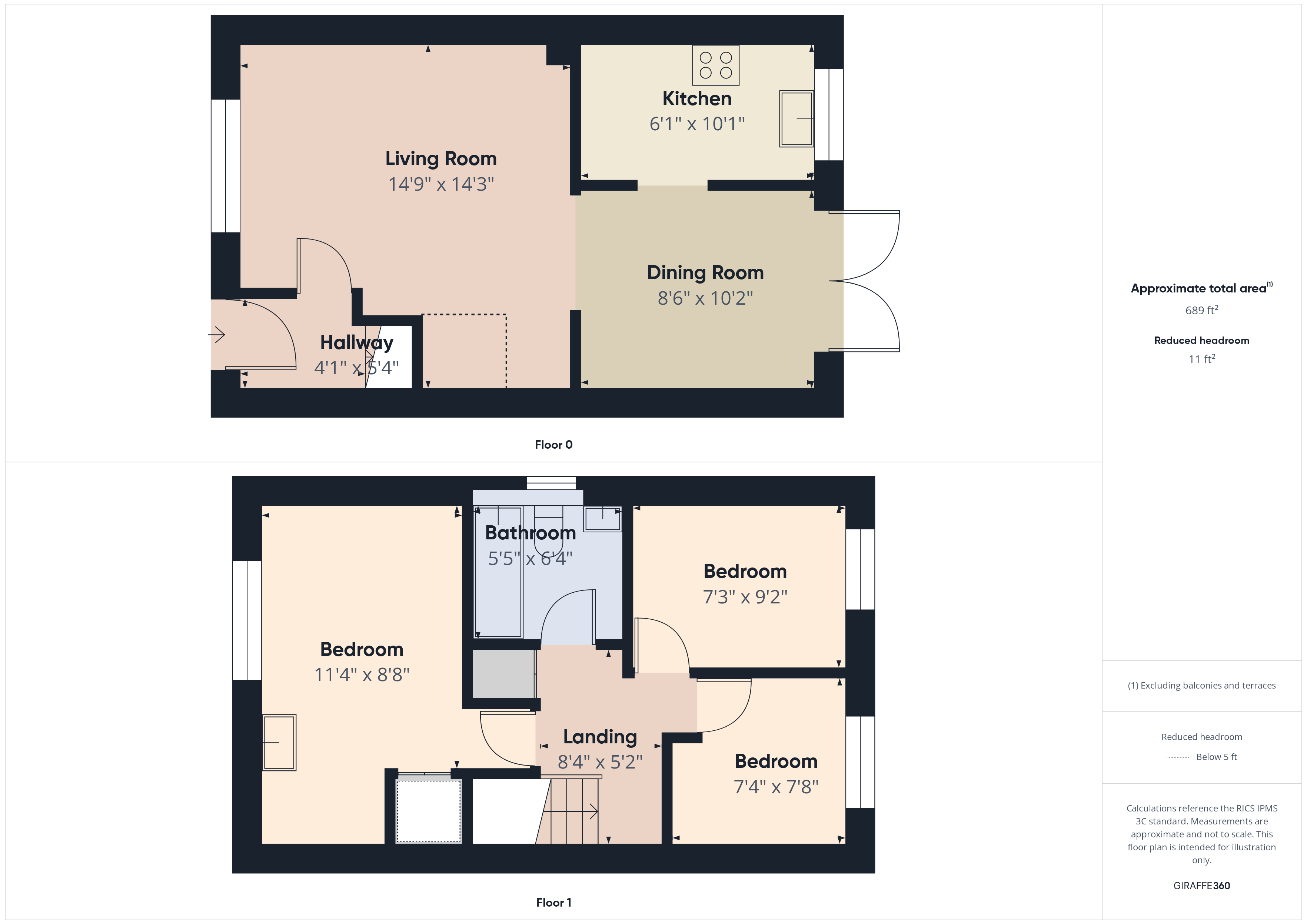 Bedroom 3 7' 4" x 7' 8" (2.24m x 2.34m)
