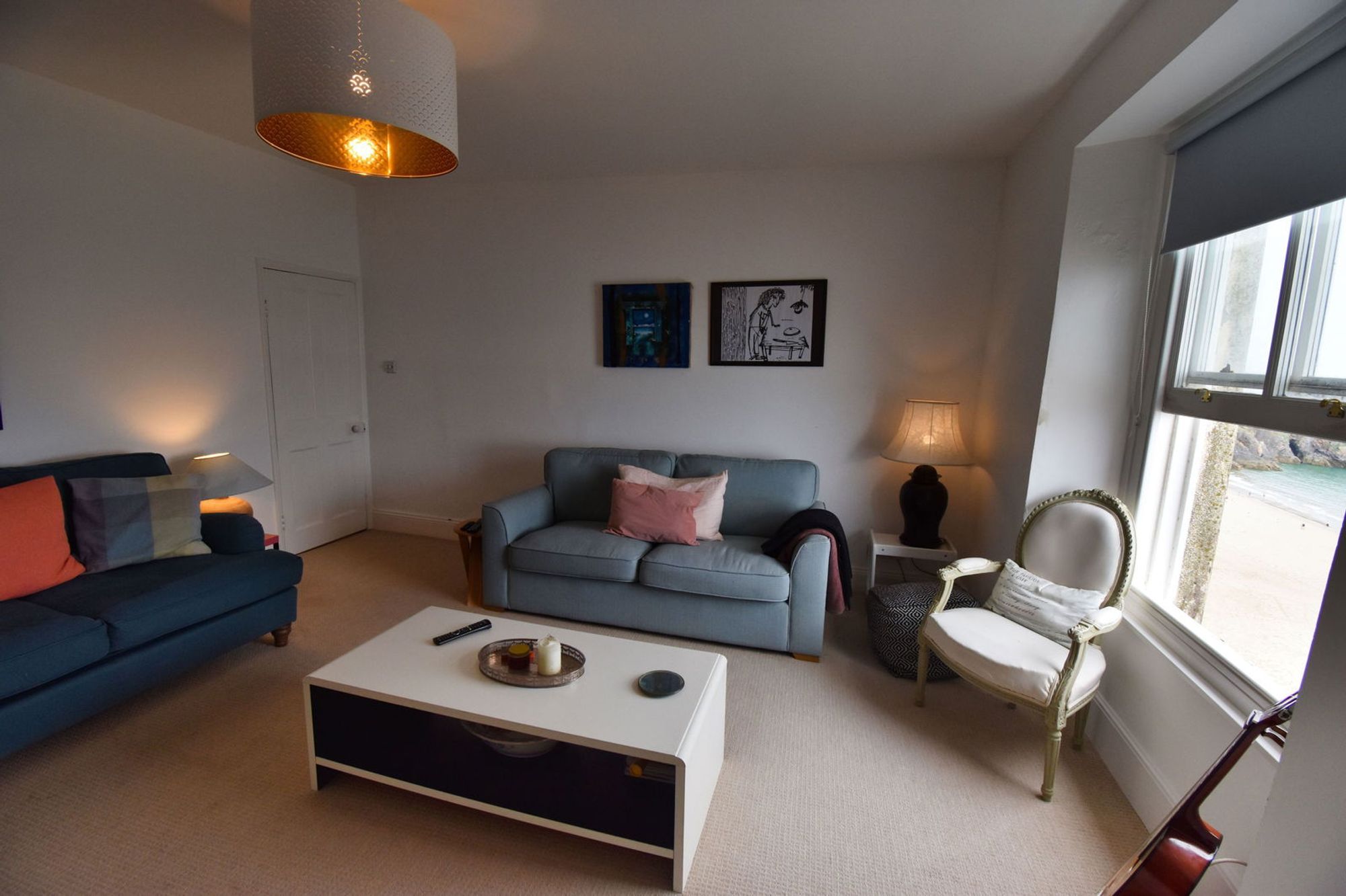 Timber framed double glazed sash window to the front affording stunning views towards St Catherine's Island, Caldey Island and Giltar Point. Inset fireplace.