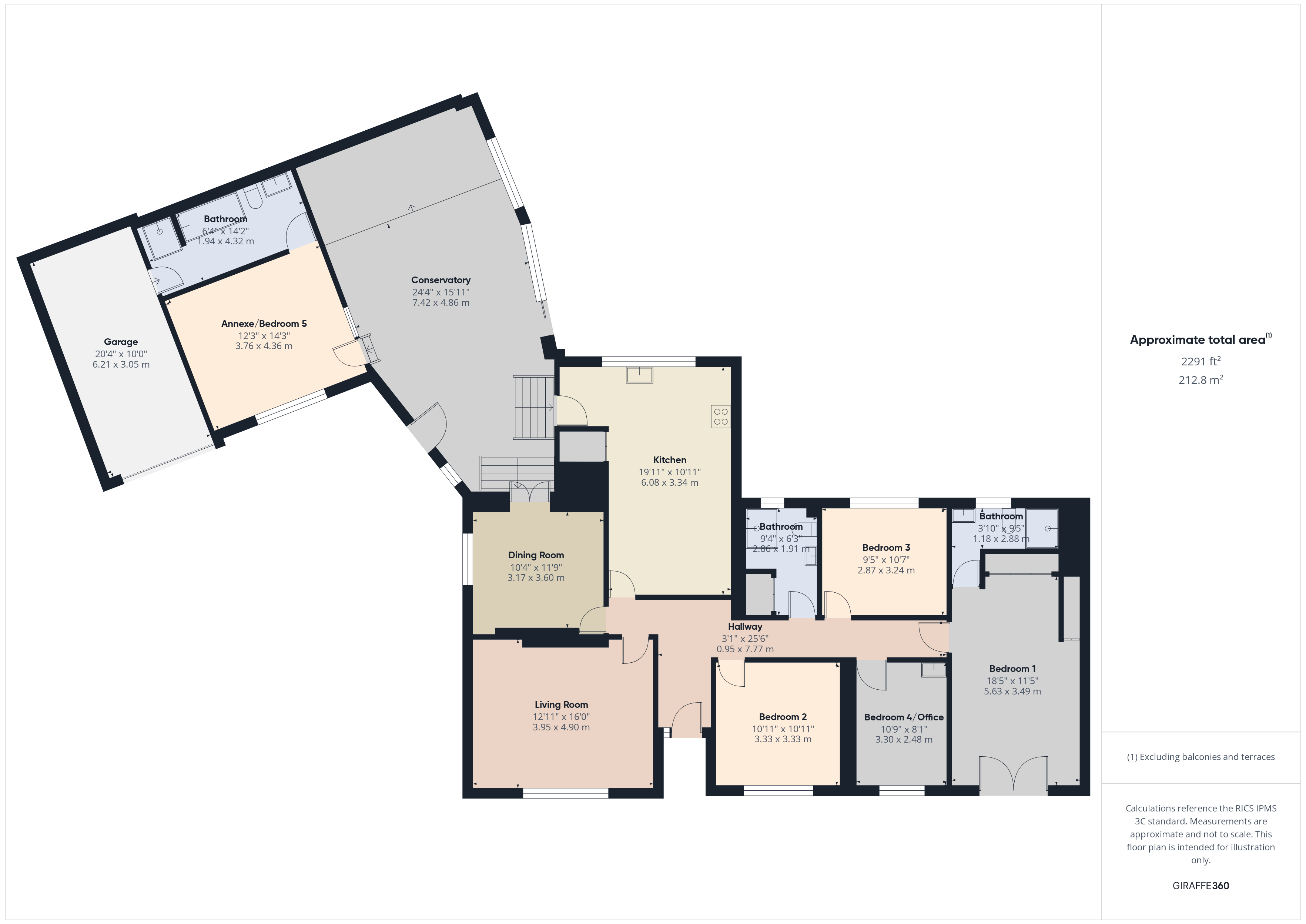 Conservatory 24' 4" x 15' 11" (7.42m x 4.86m)