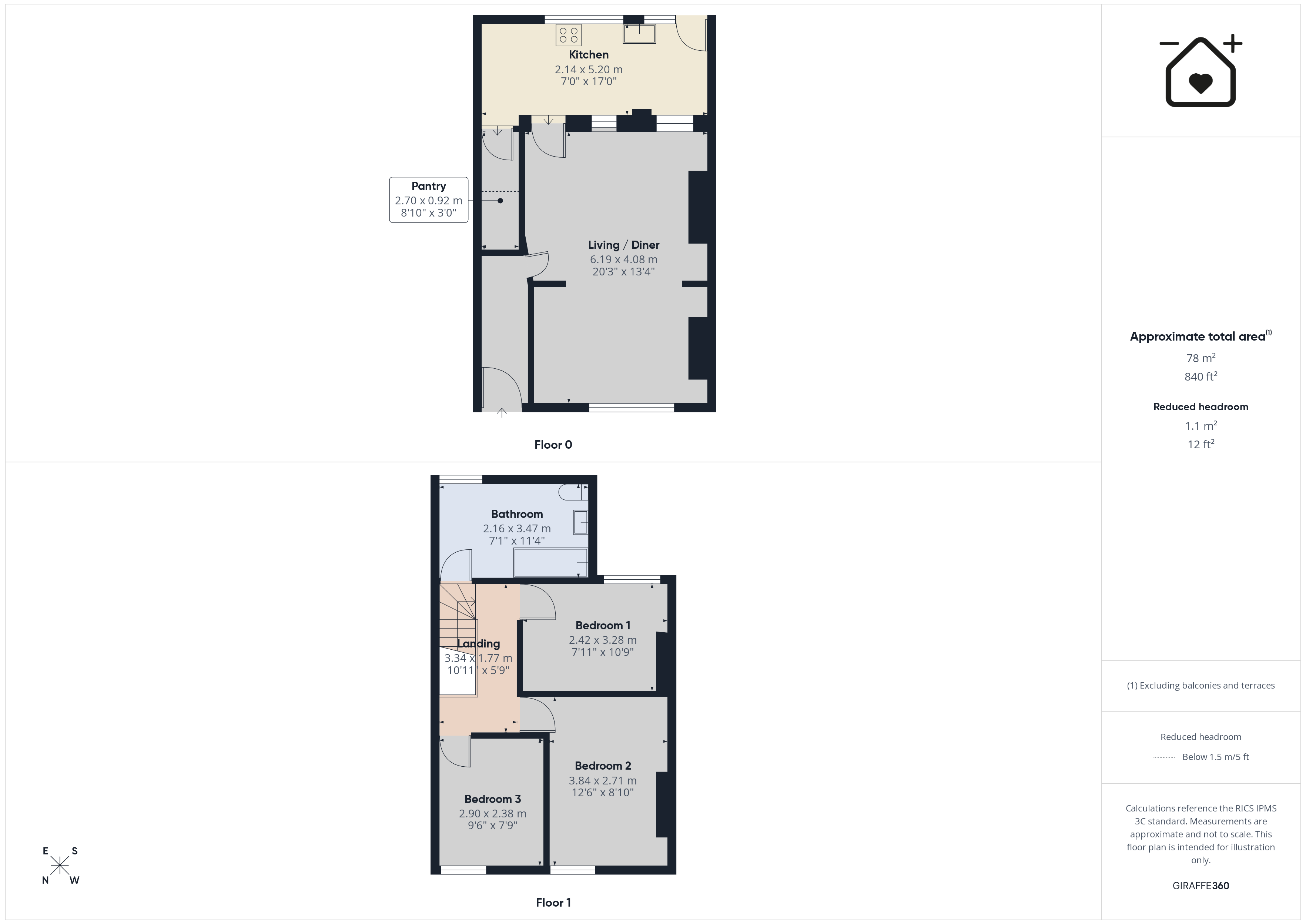 Pantry 8' 10" x 3' 0" (2.70m x 0.92m)