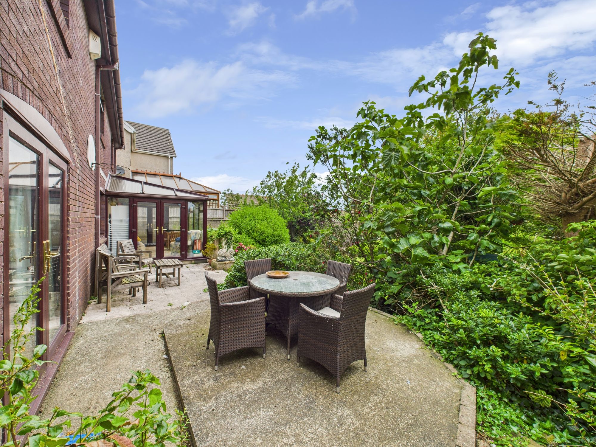 Externally, to the fore there is a driveway providing off-road parking with steps leading down to a low maintenance front garden. Side access leads to the landscaped rear garden which is of a generous size and private- perfect for summer afternoons and evenings. The rear garden is mainly laid to lawn with multiple seating areas, a block built workshop, storage shed and variety of shrubs, flowers, plants and trees.