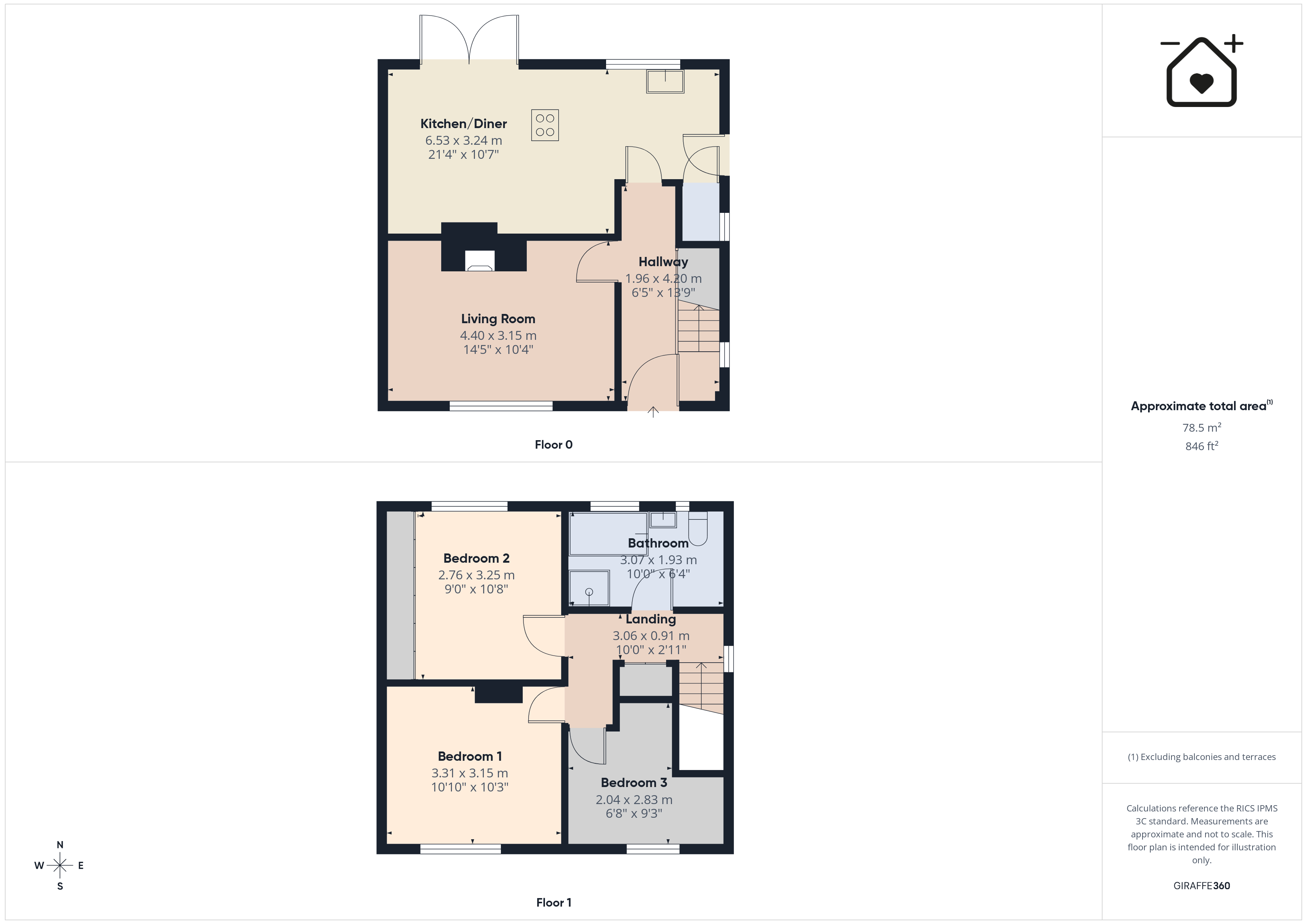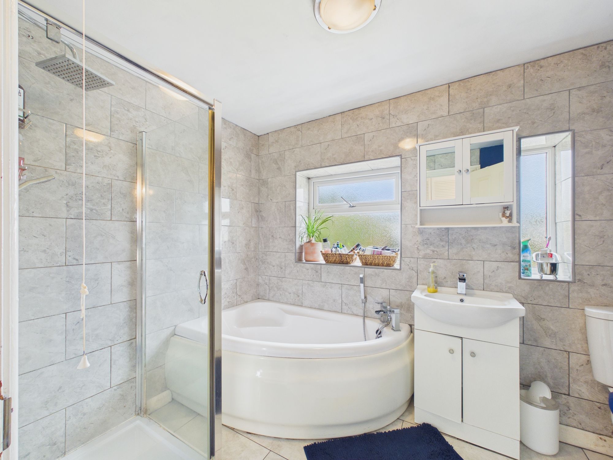 Upstairs, the property features three bedrooms (each offering plenty of natural light and flexibility for use as guest rooms, home office, or nursery) and a smartly finished family bathroom with modern fixtures and fittings. The property benefits from double glazing and efficient central heating, ensuring a warm and energy-efficient environment throughout the year.