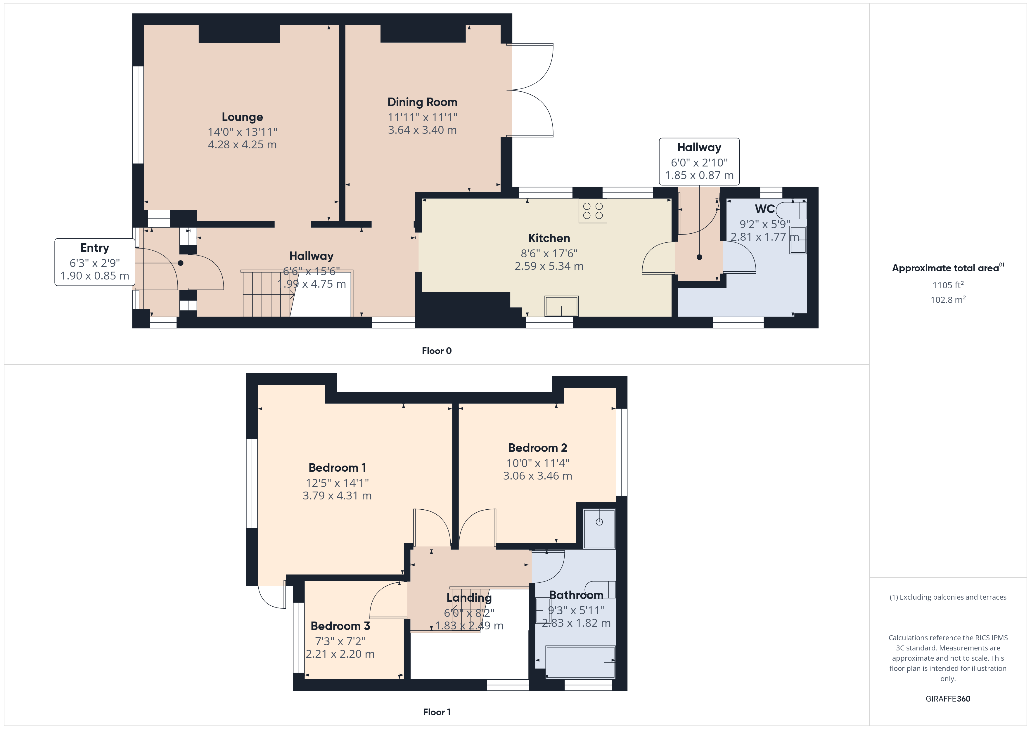Lounge 14' 1" x 13' 11" (4.28m x 4.25m)