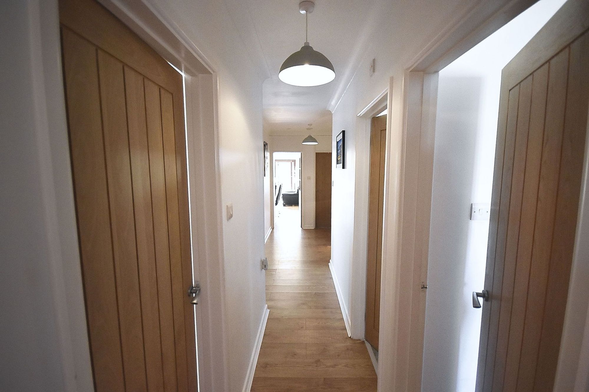 Enter the property through a uPVC security door into the large hallway. With laminate flooring and hardwood doors to all rooms. Door to large storage closet housing boiler and water tank.