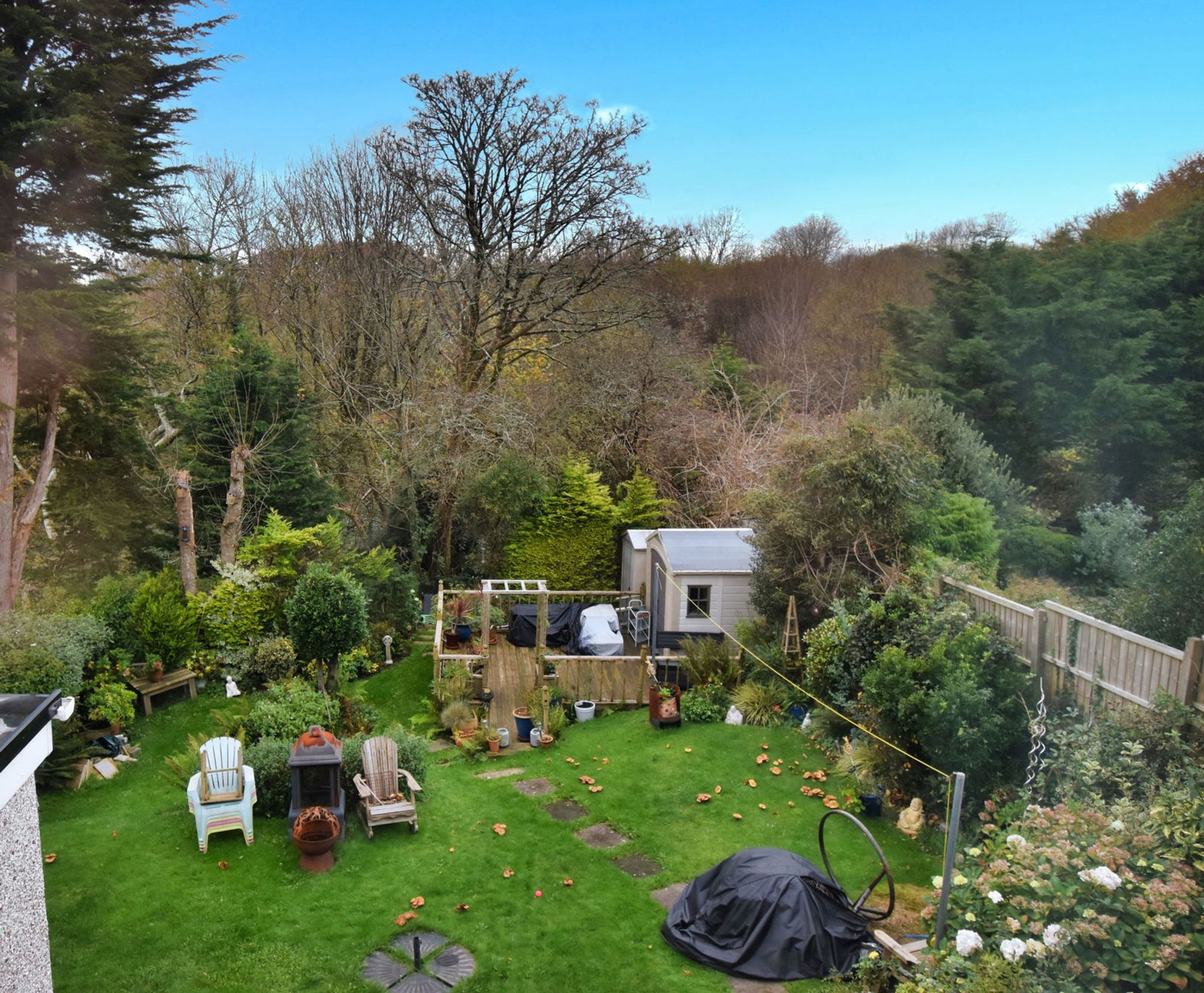 The property is approached over a tarmac driveway which provides off road parking for two cars, and leads to a lawned garden ant the side. At the rear is a sizeable terraced garden with mature shrubs trees and flowers, a decked seating area and a paved patio, a wonderful spot to enjoy al fresco dining and relaxing.