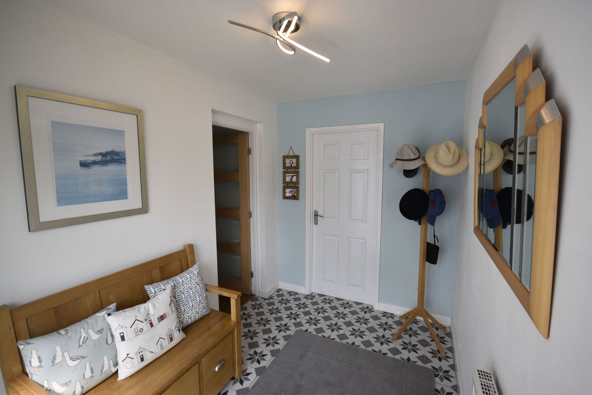 Enter the property through the frosted glazed door into a large porch area, with a door to the Family Bathroom and the Hallway. Decorative ceramic floor tiles.