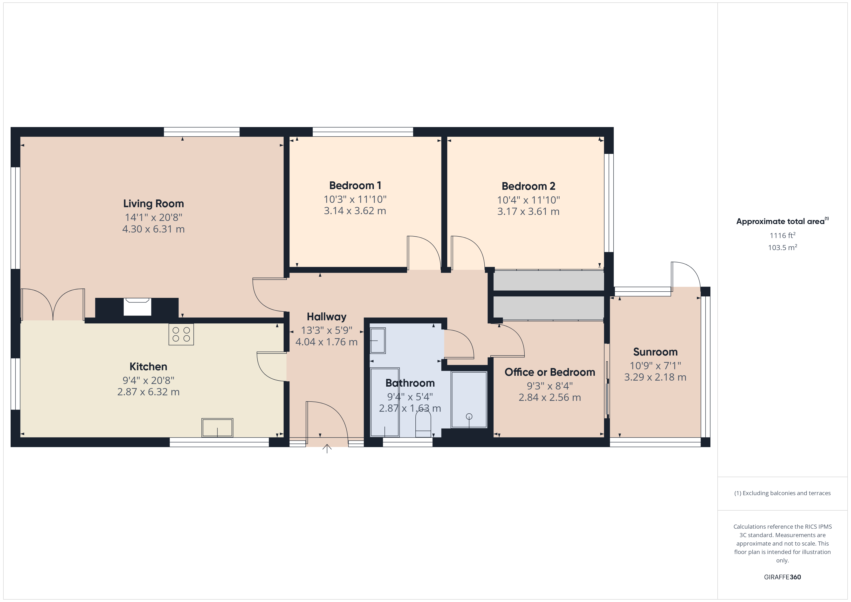 Sunroom 10' 10" x 7' 2" (3.29m x 2.18m)
