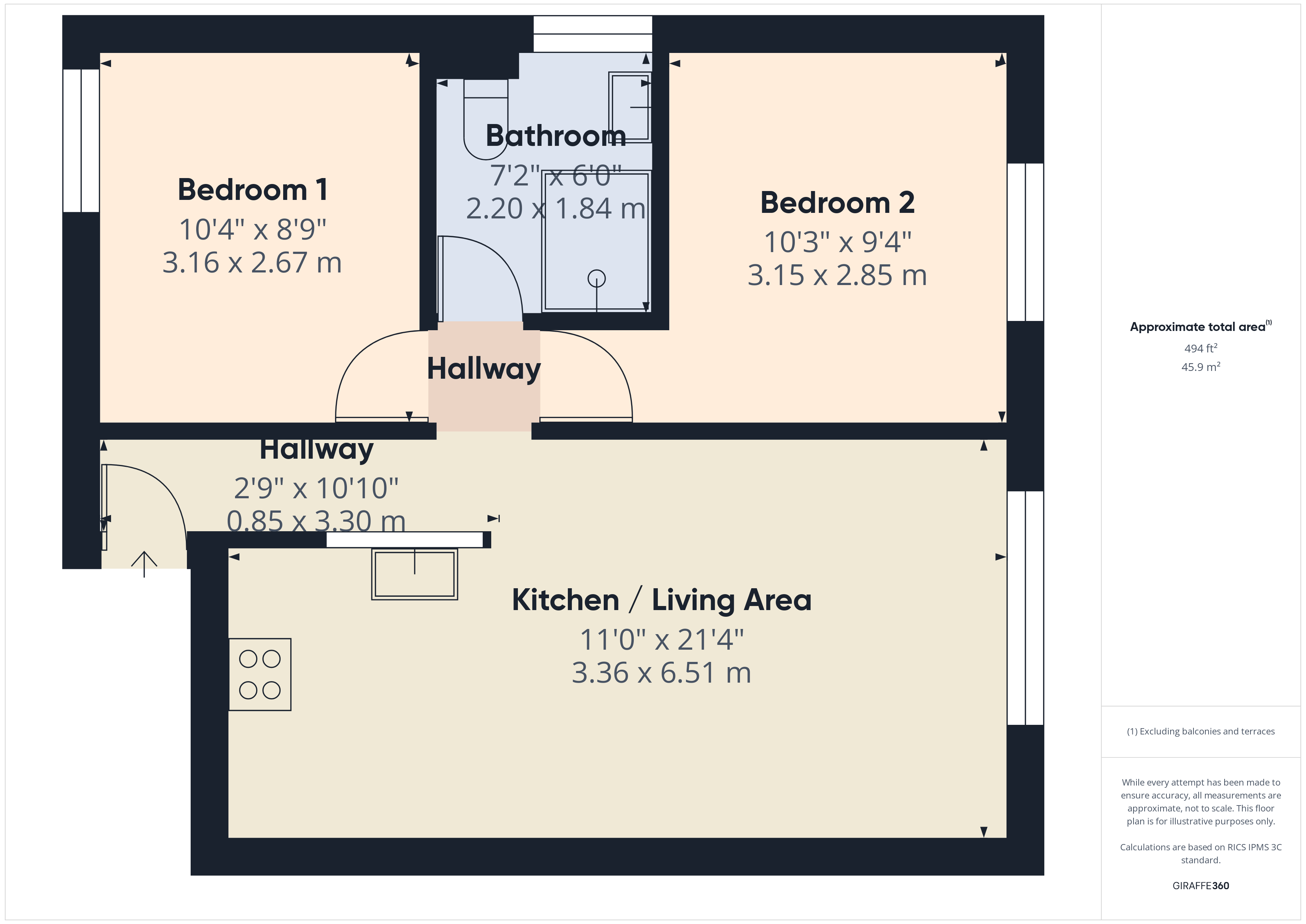 - 2 Double Bedrooms, Kitchen Living Area, Family Bathroom