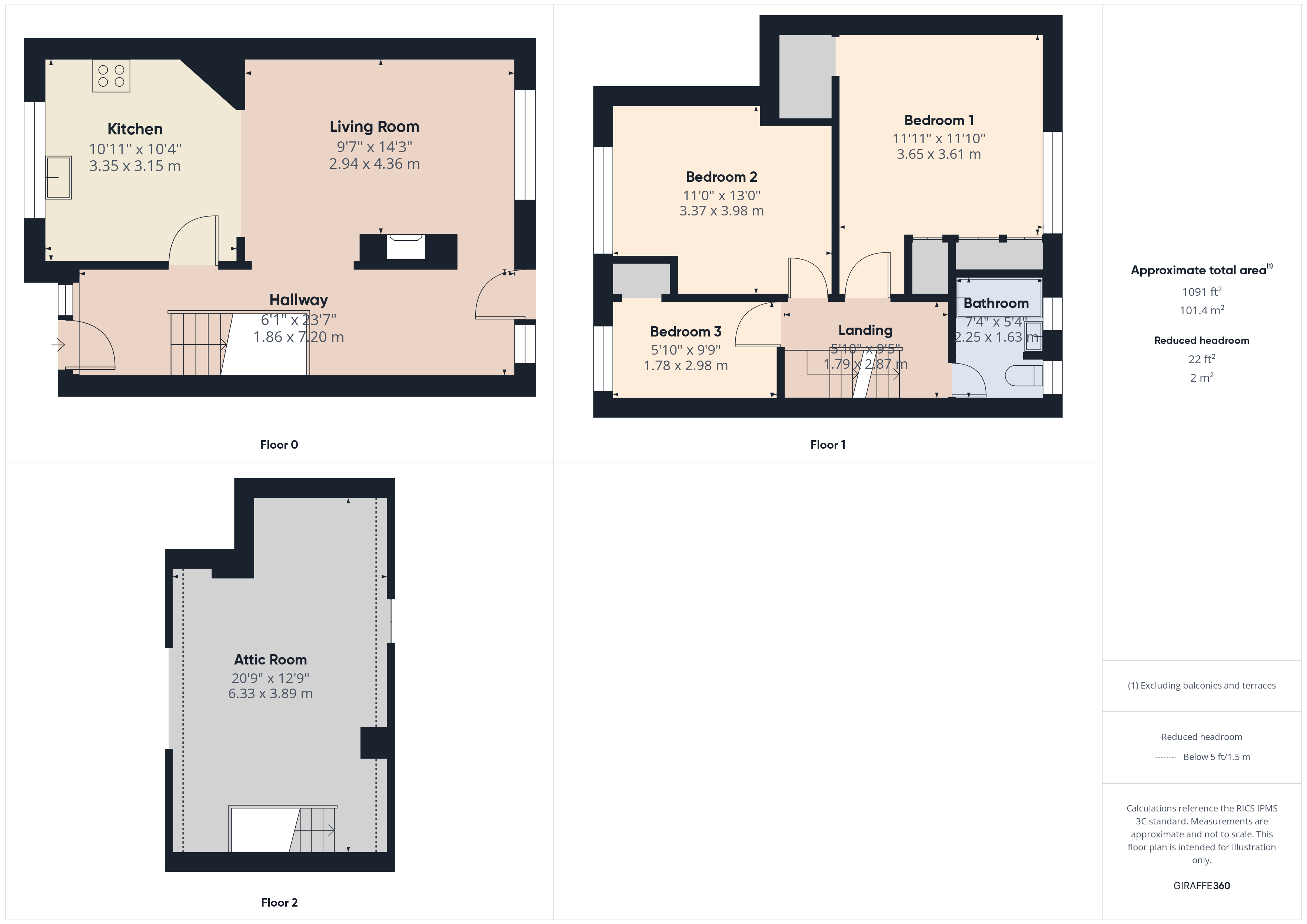 Bedroom 3 5' 10" x 9' 9" (1.78m x 2.98m)