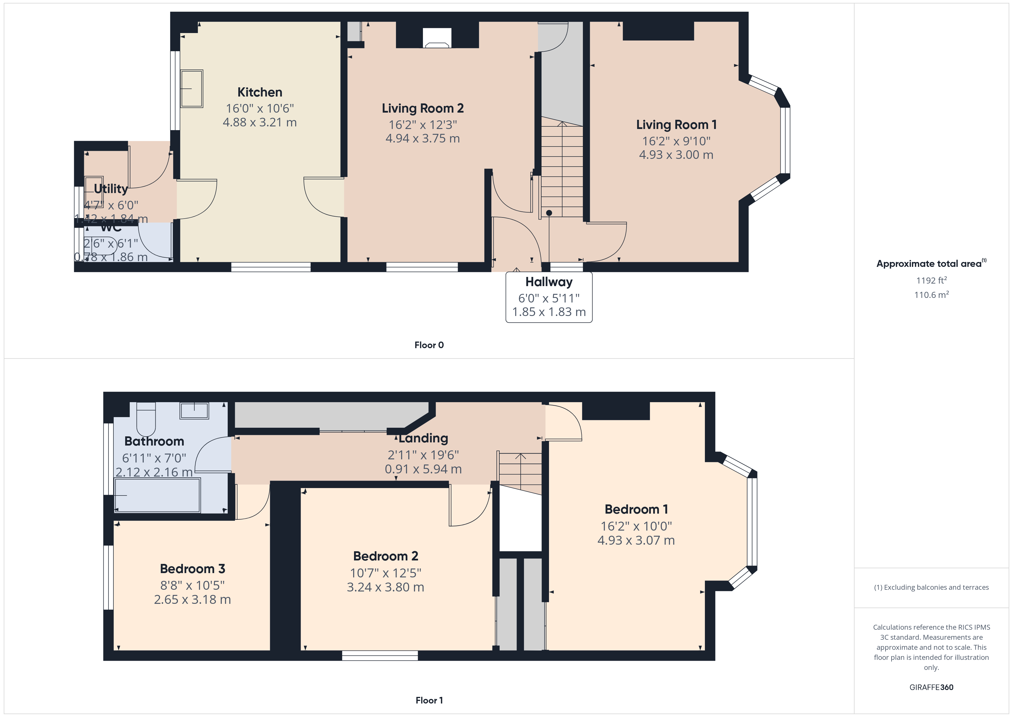 Living Room 1 16' 2" x 9' 10" (4.93m x 3.00m)