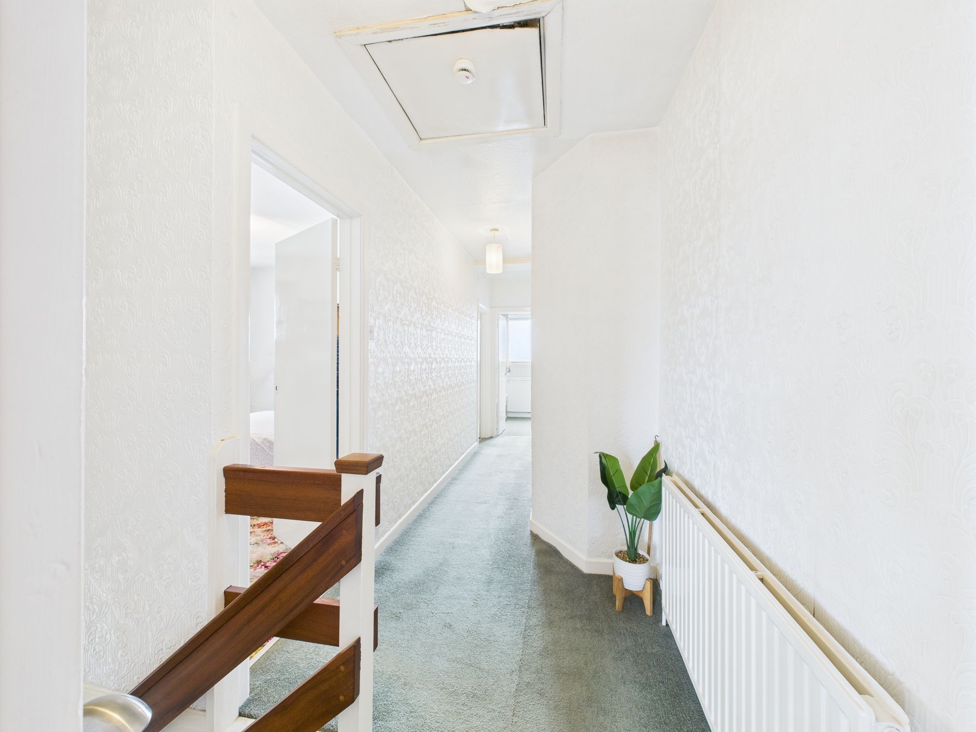 Entering the property into the hallway you will find the large, main lounge area on your right and a further reception room directly ahead of the front door which connects to the spacious kitchen. At the rear of the property is a convenient Wc and utility room which provides access to the rear garden. Upstairs, you will find 3 bedrooms - the master of which provides amazing views of the local area. The first floor also features a family bathroom. The moment you step through the door of 24 Merlins Crest it is clear to see the potential that this family home holds!
