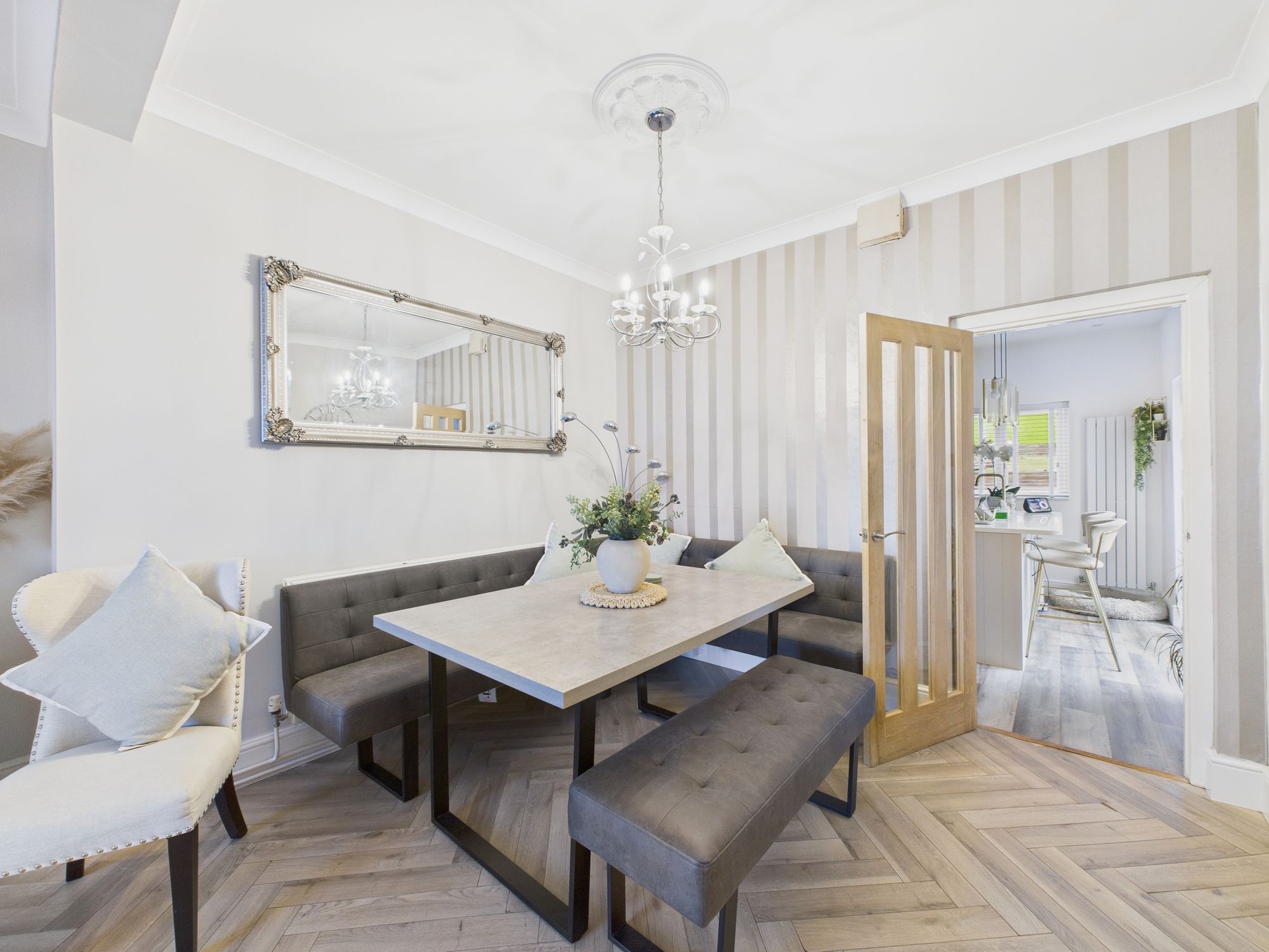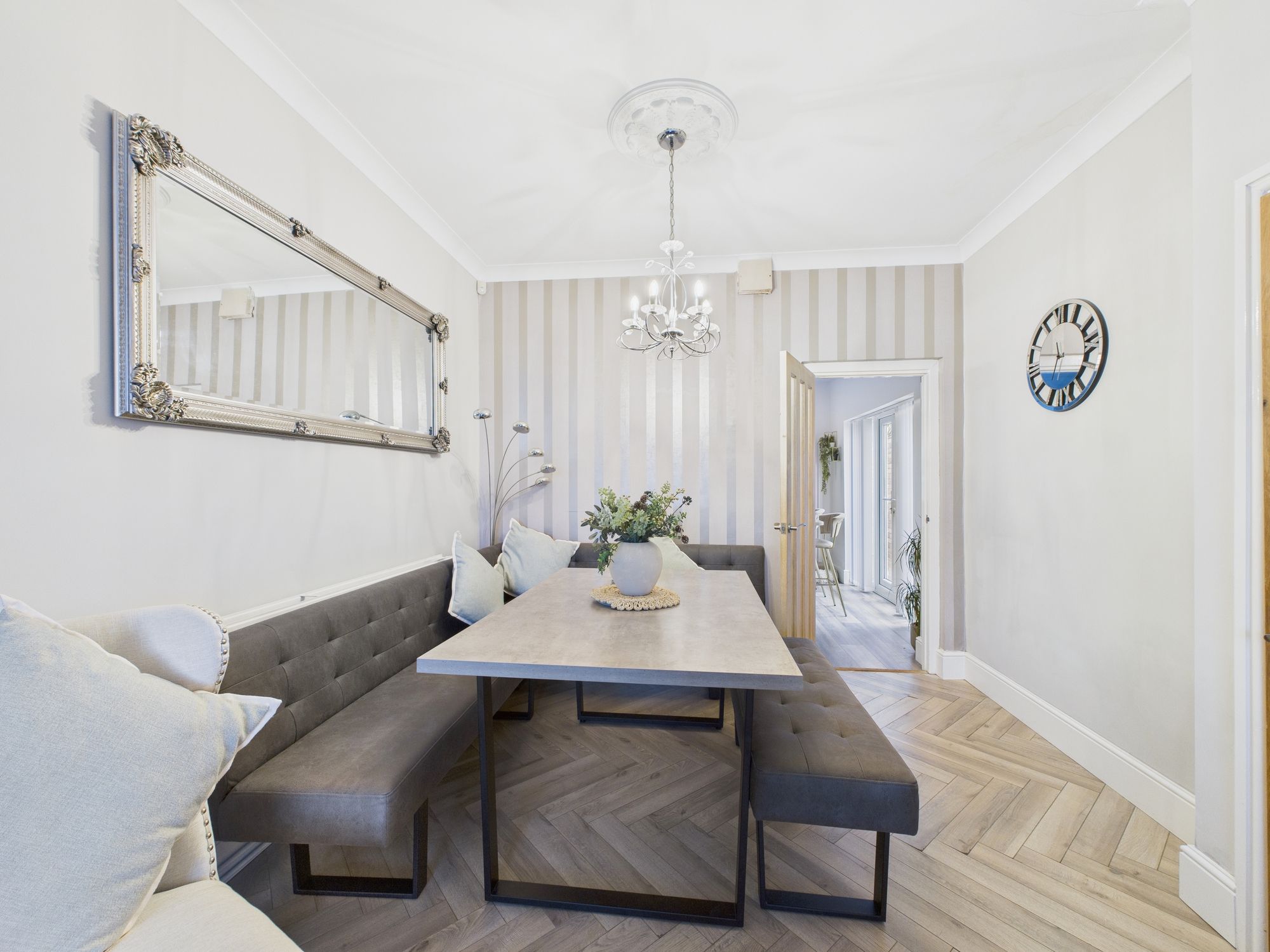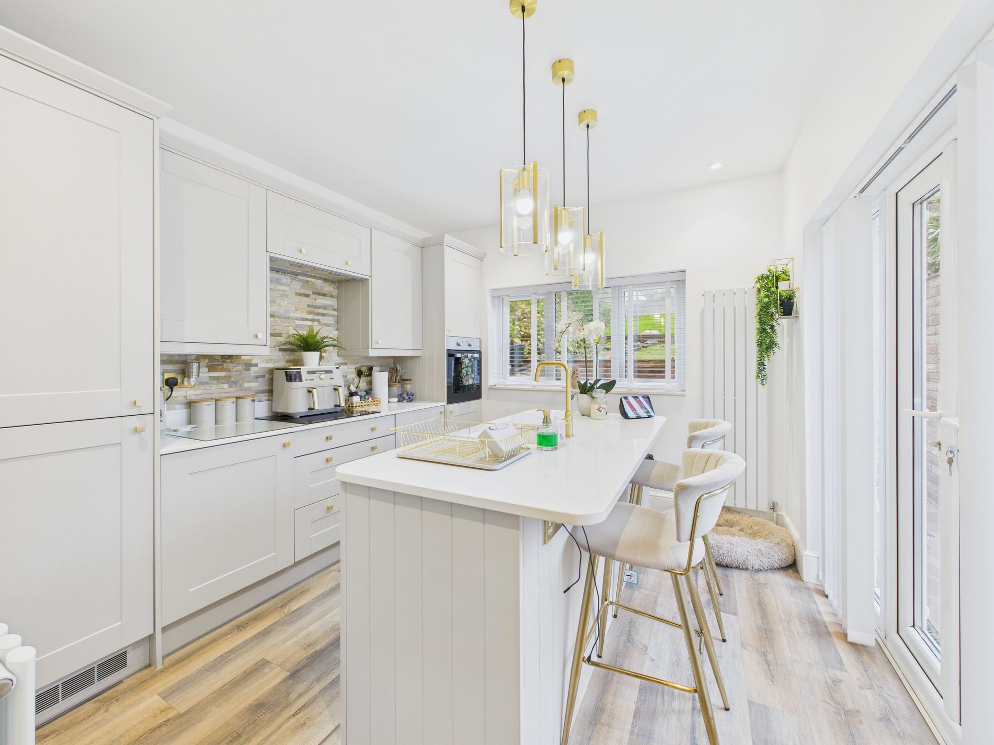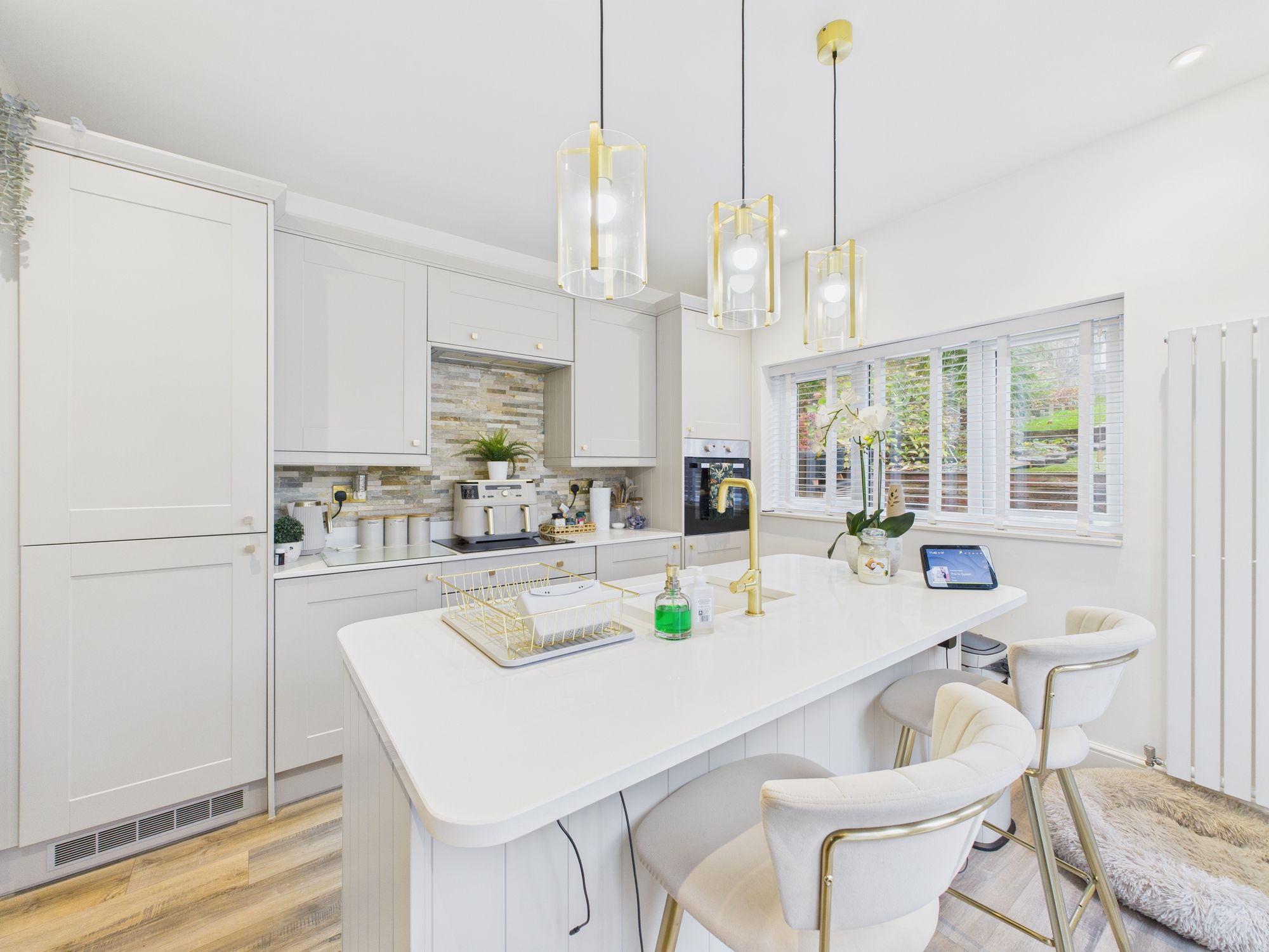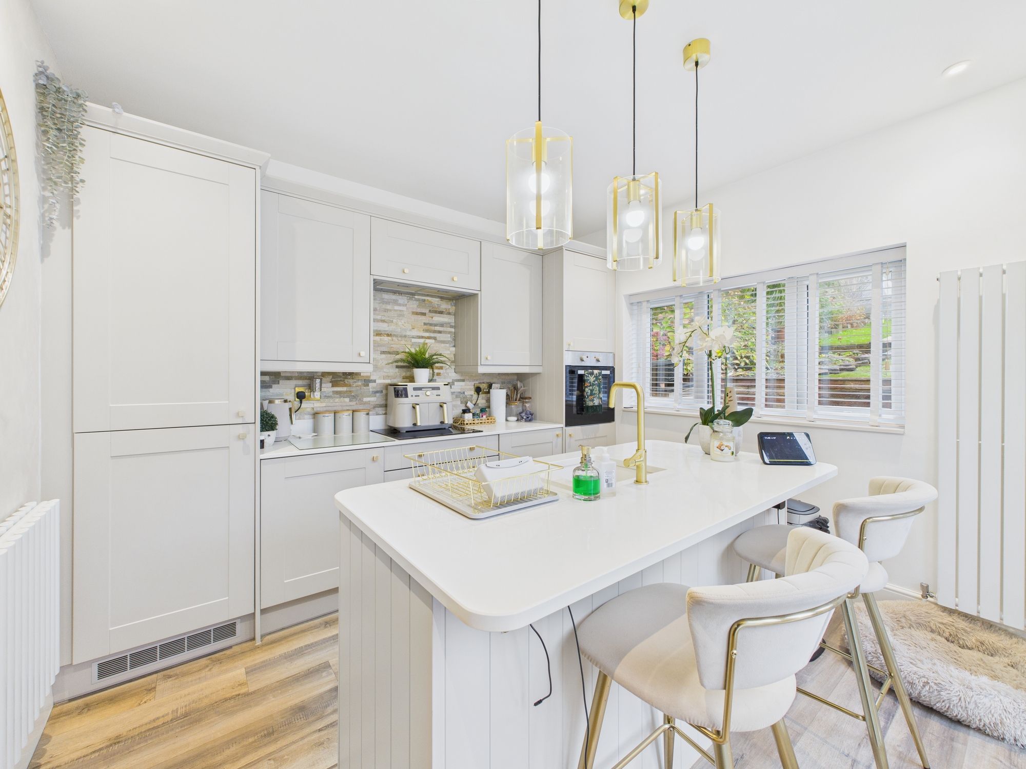 The heart of the home, the large tiered rear garden, offers a tranquil escape from the hustle and bustle of daily life and is an ideal space for outdoor entertaining, relaxation, or simply soaking up the natural surroundings.