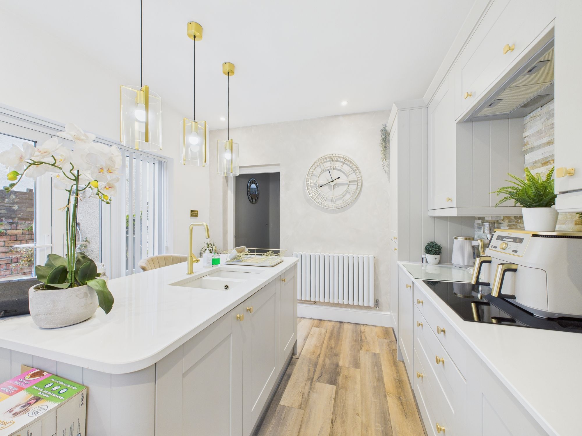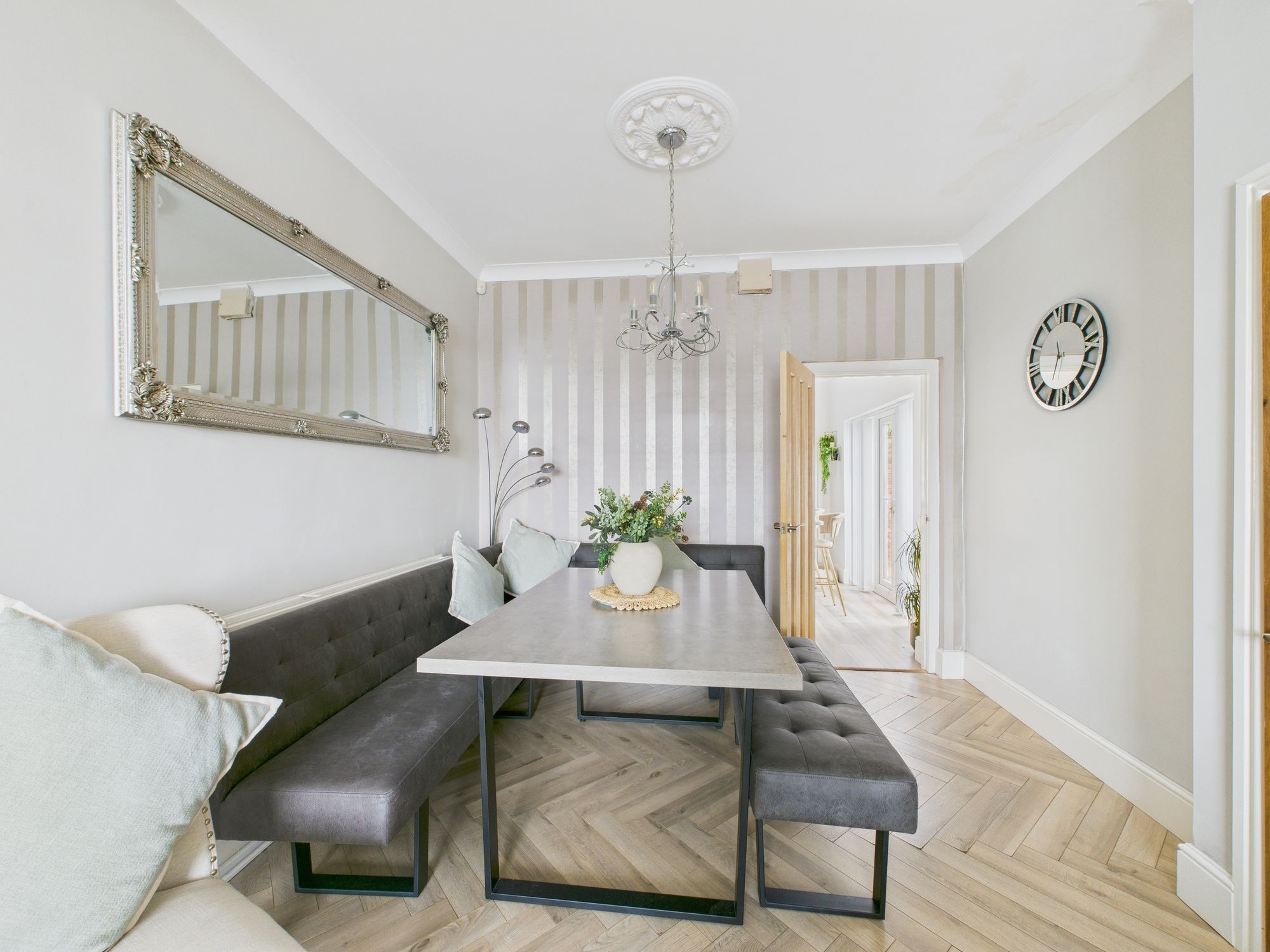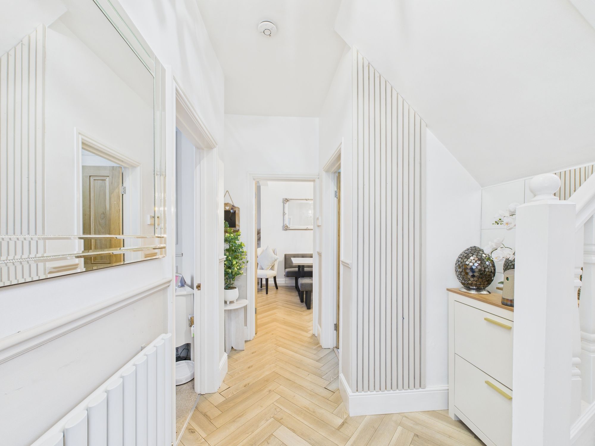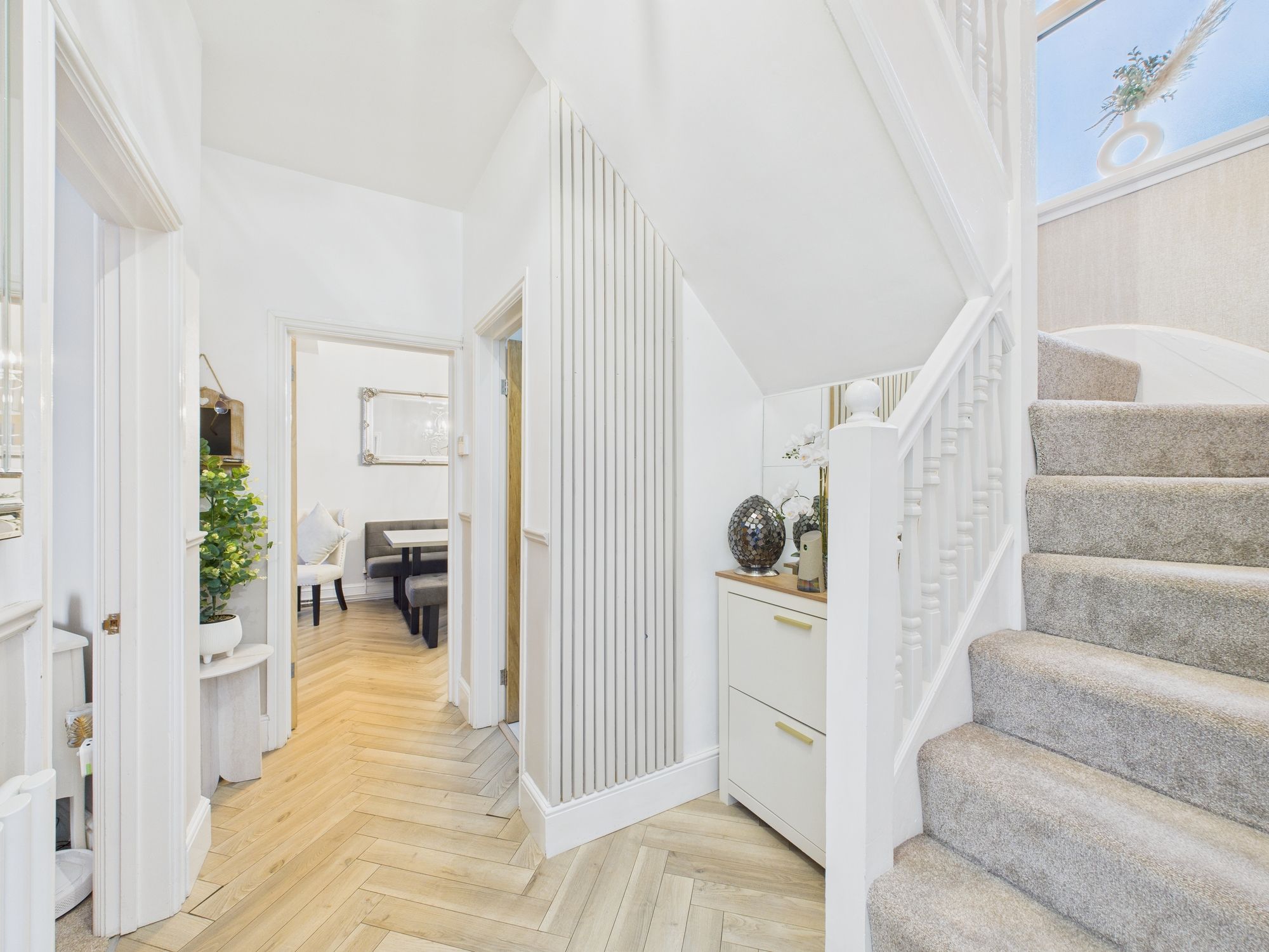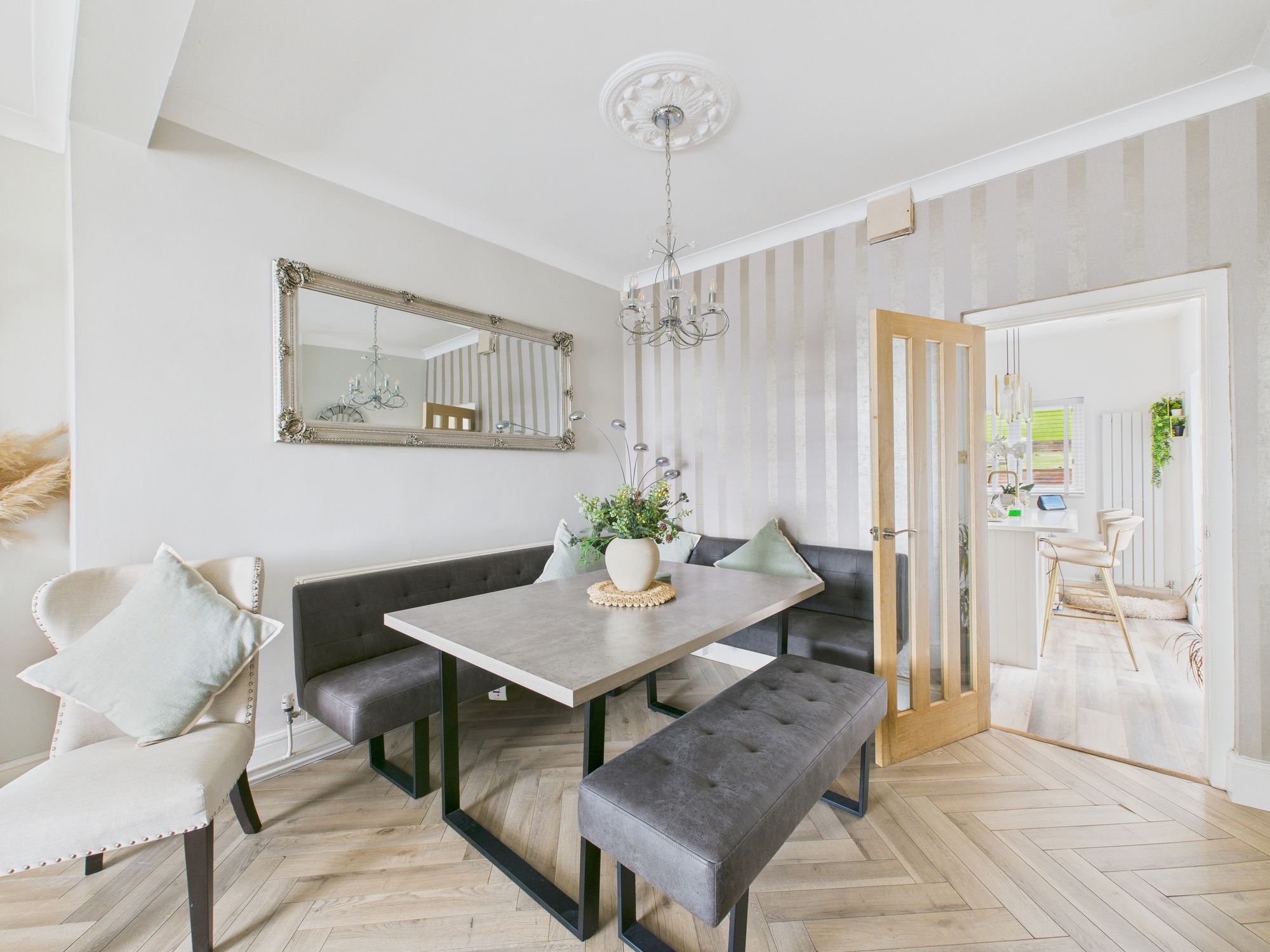 The heart of the home, the large tiered rear garden, offers a tranquil escape from the hustle and bustle of daily life and is an ideal space for outdoor entertaining, relaxation, or simply soaking up the natural surroundings.