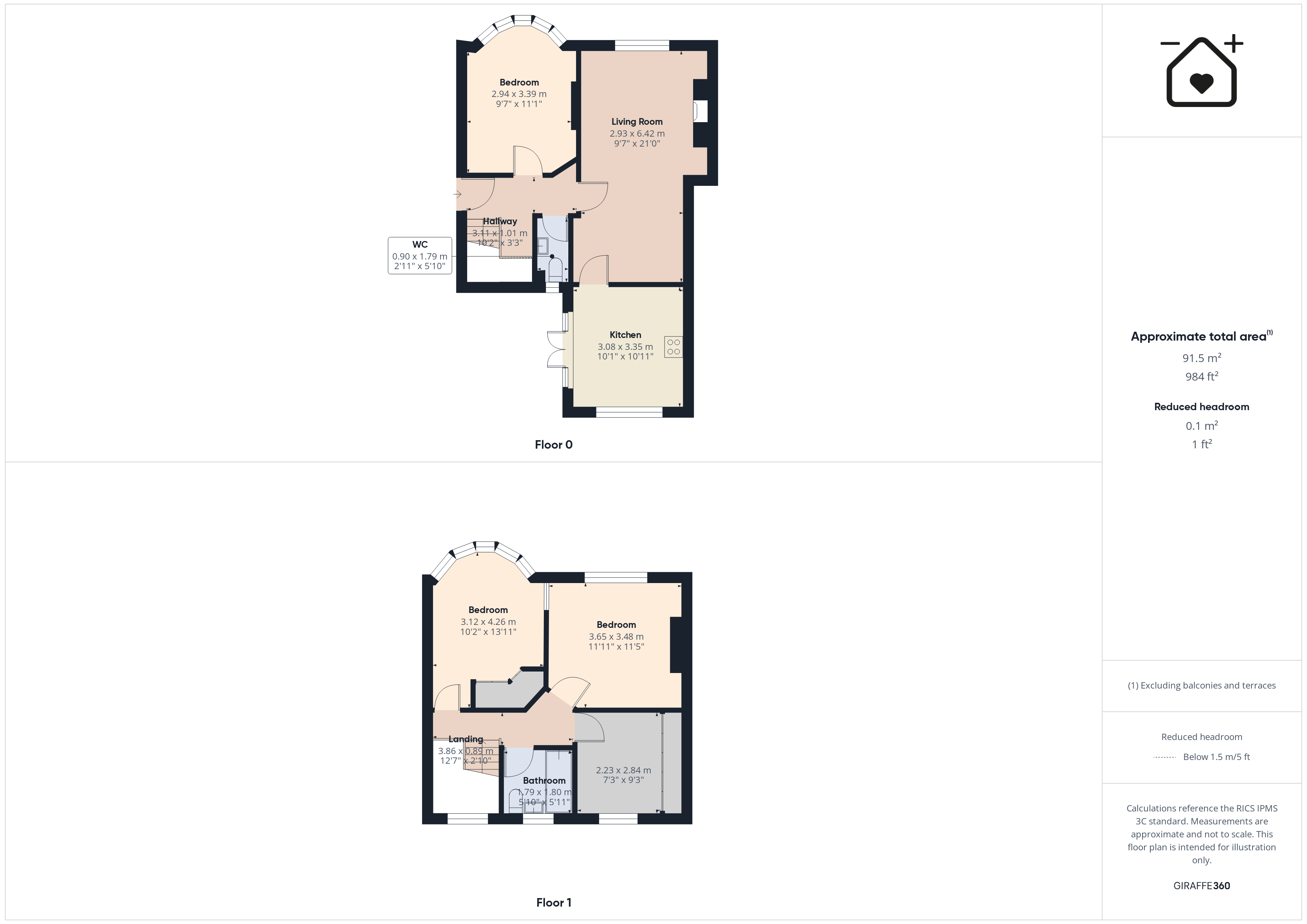 Bedroom 2 11' 0" x 11' 0" (3.35m x 3.35m)