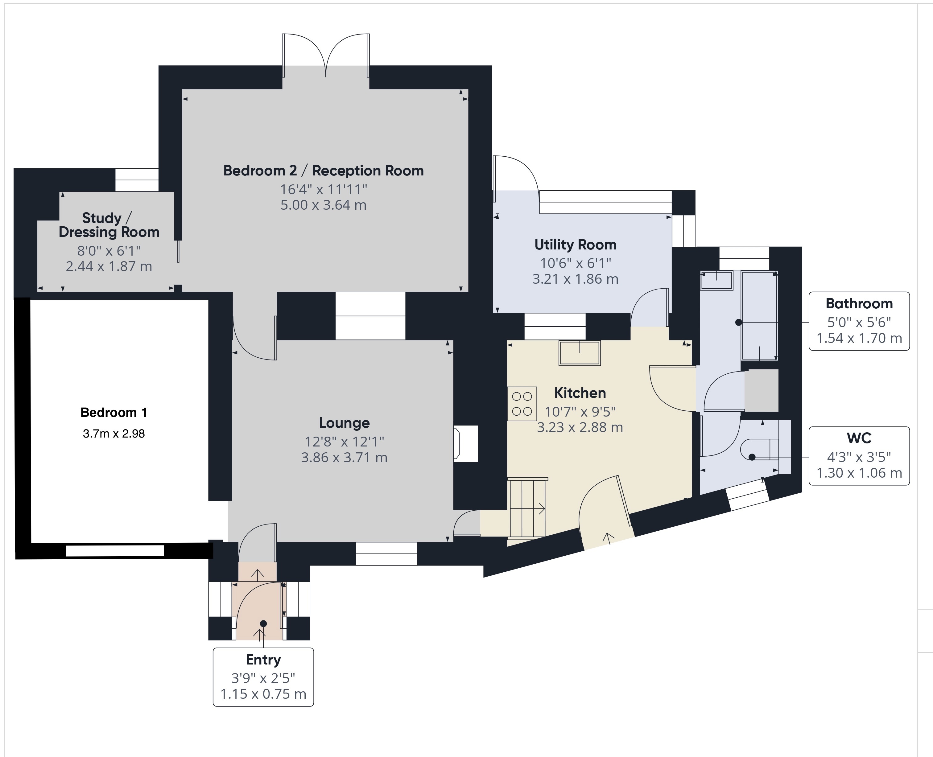 - 1 Double Bedroom 1 Single Bedroom, Office / Dressing Room, Lounge, Kitchen, Utility, Bathroom, Wc & Porch
