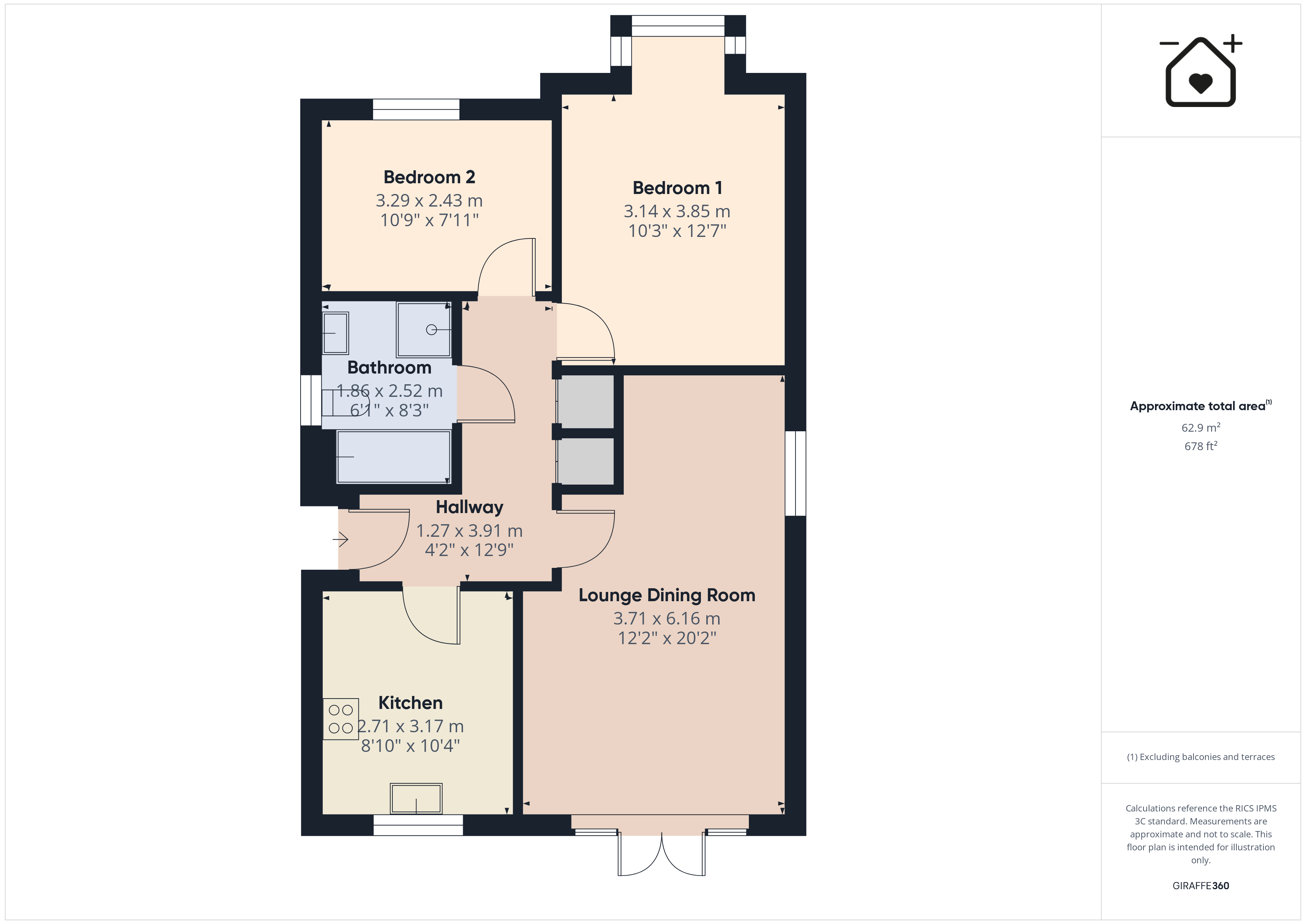 • Kitchen, Lounge Dining Room, 2 Double Bedrooms, Family Bathroom