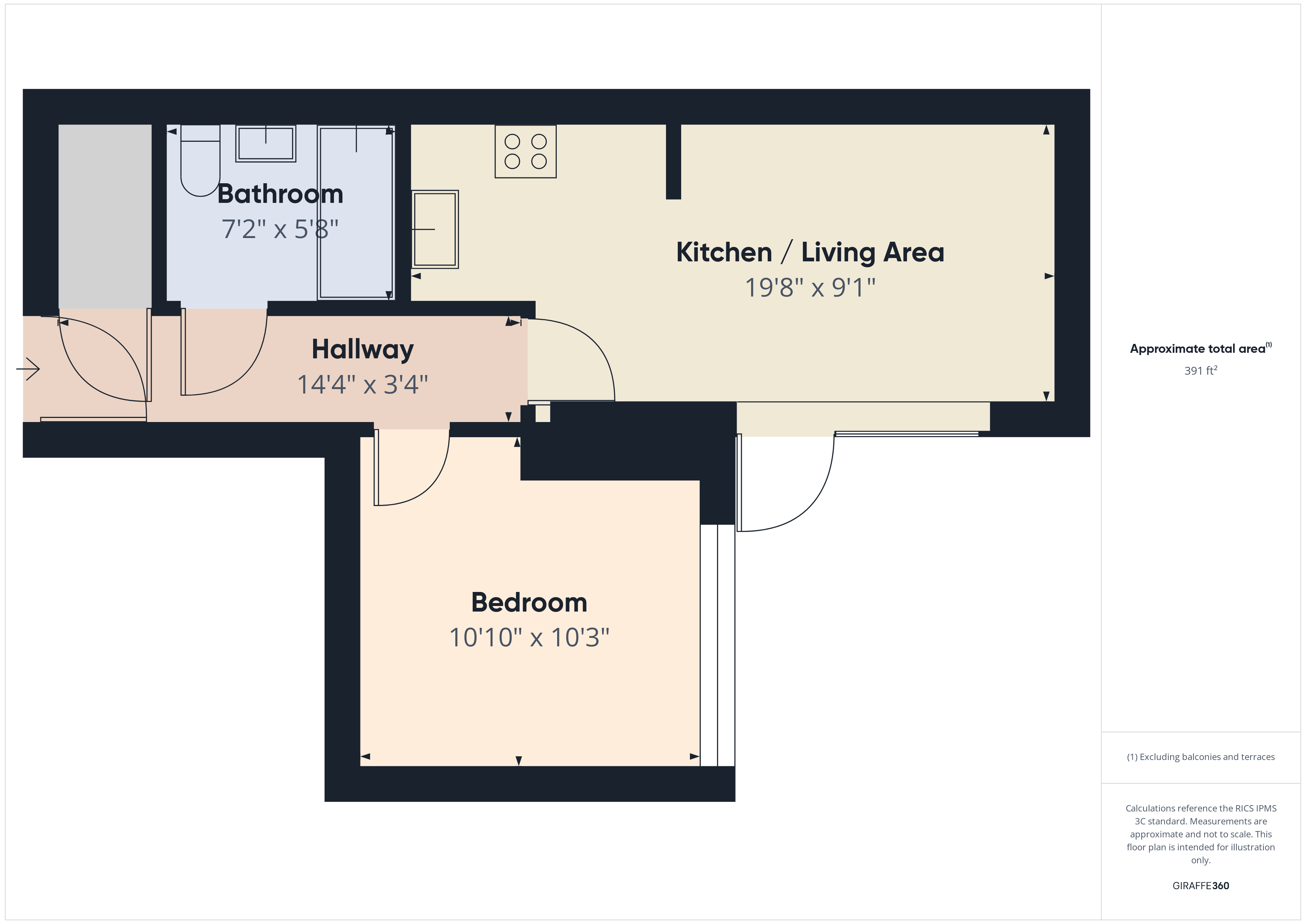 Kitchen/Livingroom 19' 8" x 9' 1" (5.99m x 2.77m)