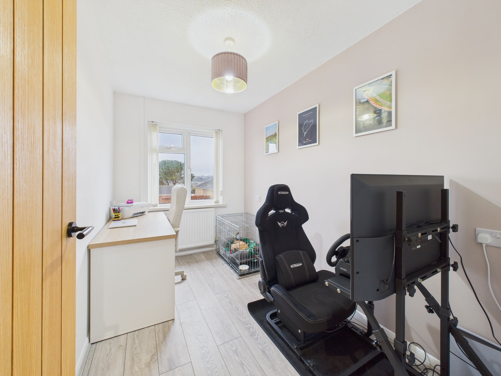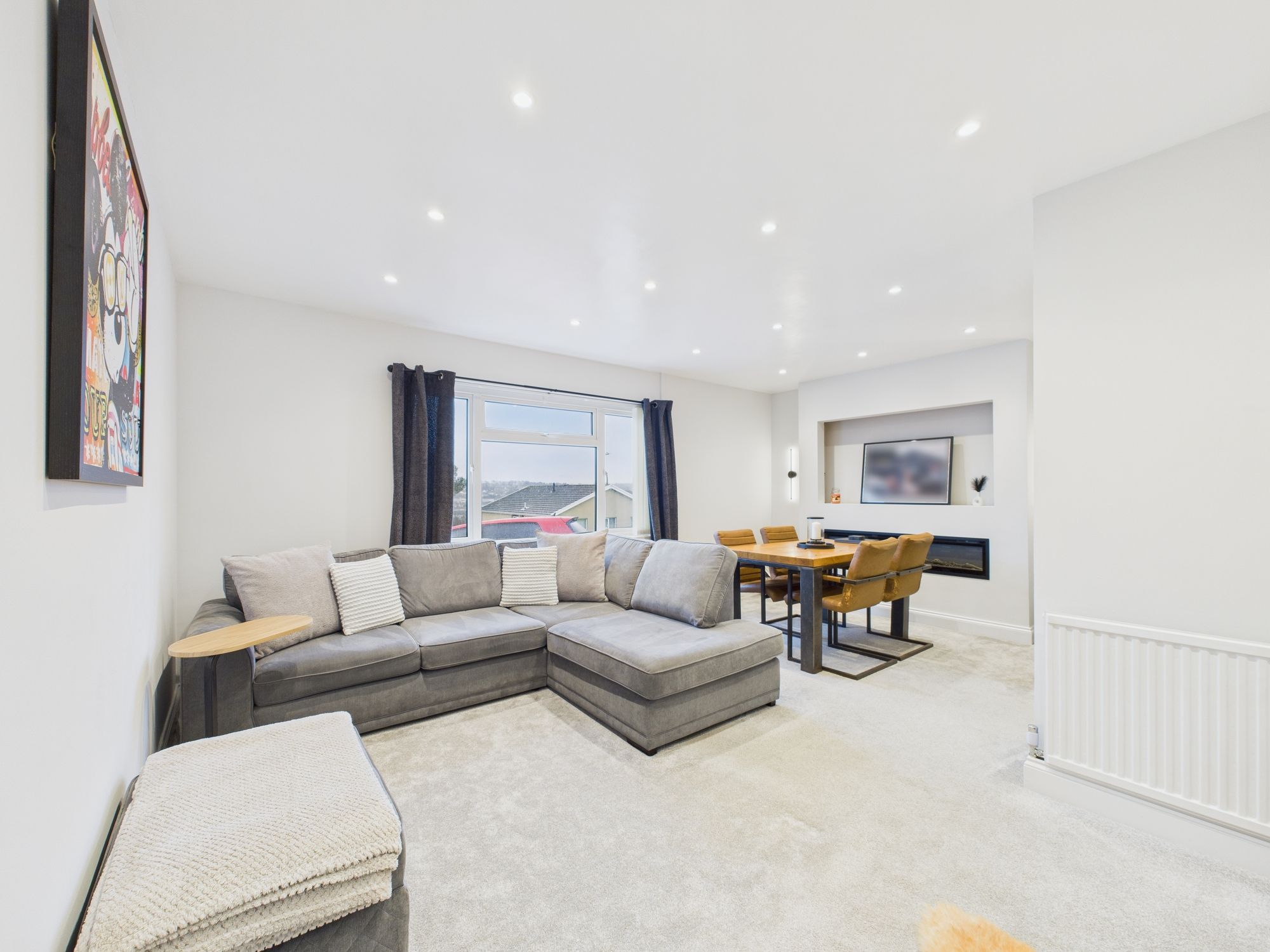 The accommodation enters to a welcoming hallway effortlessly flowing through the home and seamlessly connected the accommodation together. Leading to the right as you proceed along the hall there is a large, lounge dining room complete with media wall and large window allowing natural light to fill the room whilst enjoying elevated rolling views.  Adjoining the lounge dining room there is a newly fitted, contemporary kitchen breakfast room complete with modern units, integrated appliances and an external door leading to the rear garden.  The impressive family bathroom sits in the centre of the home and has been refurbished to the highest standard offering walk in double shower, bath, wc and wash basin.  The remainder of the accommodation consists of 2 generously sized double bedrooms and a large 3rd single bedroom.  The property benefits from a Nest controlled gas central heating system and uPVC double glazing throughout.