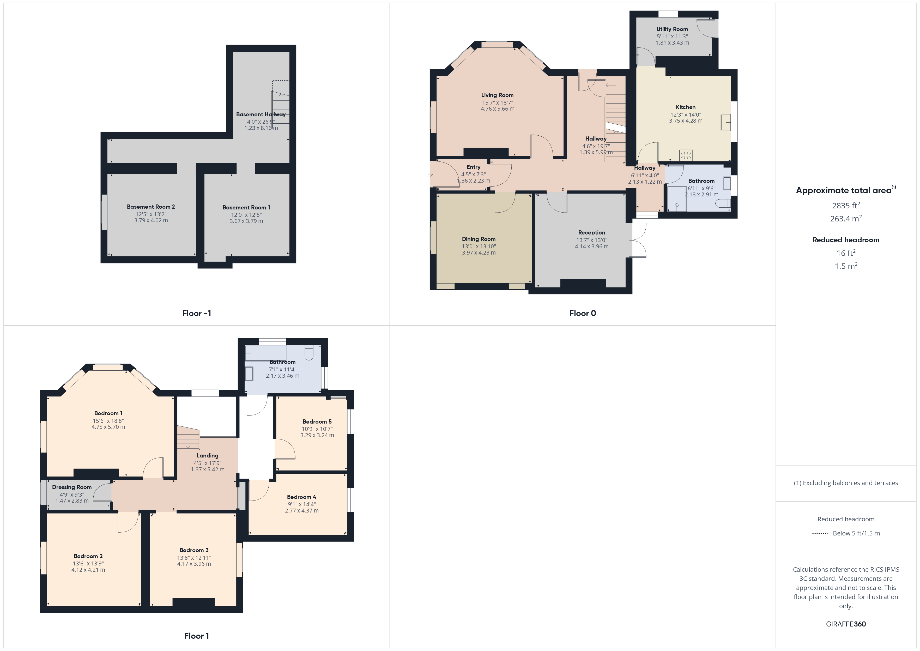 - 5 Bedrooms, 2 Bathrooms, Lounge, Dining Room, Kitchen, Reception, Utility Room, Dressing Room, Basement