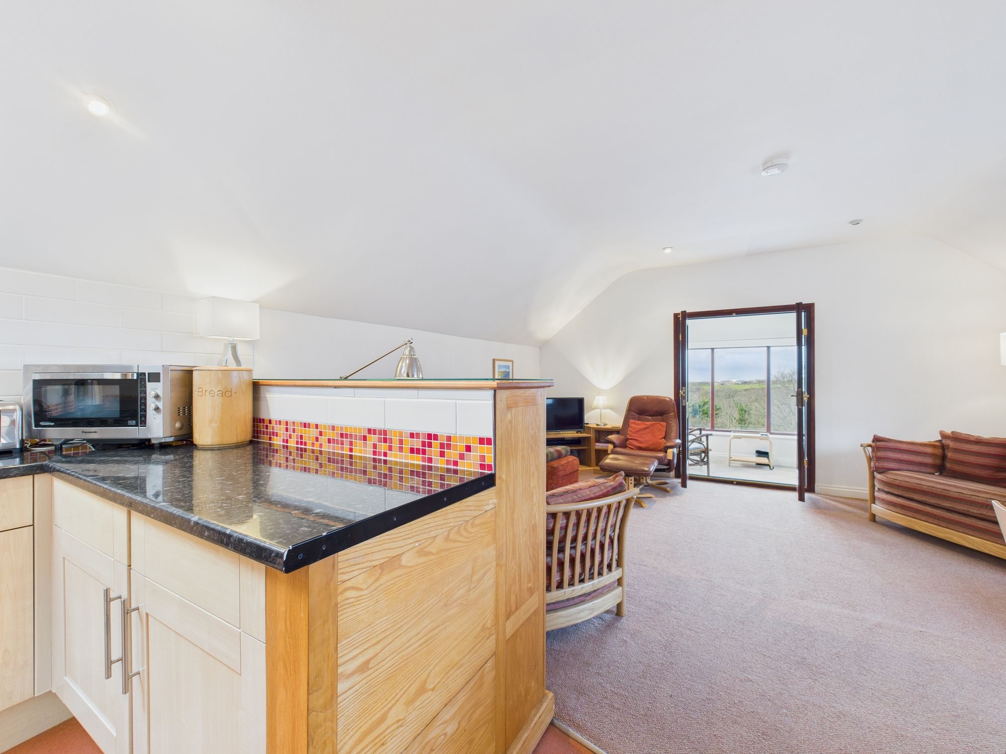 You enter the property in a spacious hallway which provides access to the bottom floor of the property. Here you will find a convenient Wc and utility room and the first of the large bedrooms with en-suite. Up the stairs then will lead you to the open-plan lounge and kitchen which feeds to the extended lounge/sun room which provides exceptional views of the surrounding countryside; overlooking the cathedral with distant views of Ramsey Island, Carn Llidi and the Irish Sea. Further to the upstairs accommodation is the second bedroom also featuring an en-suite.