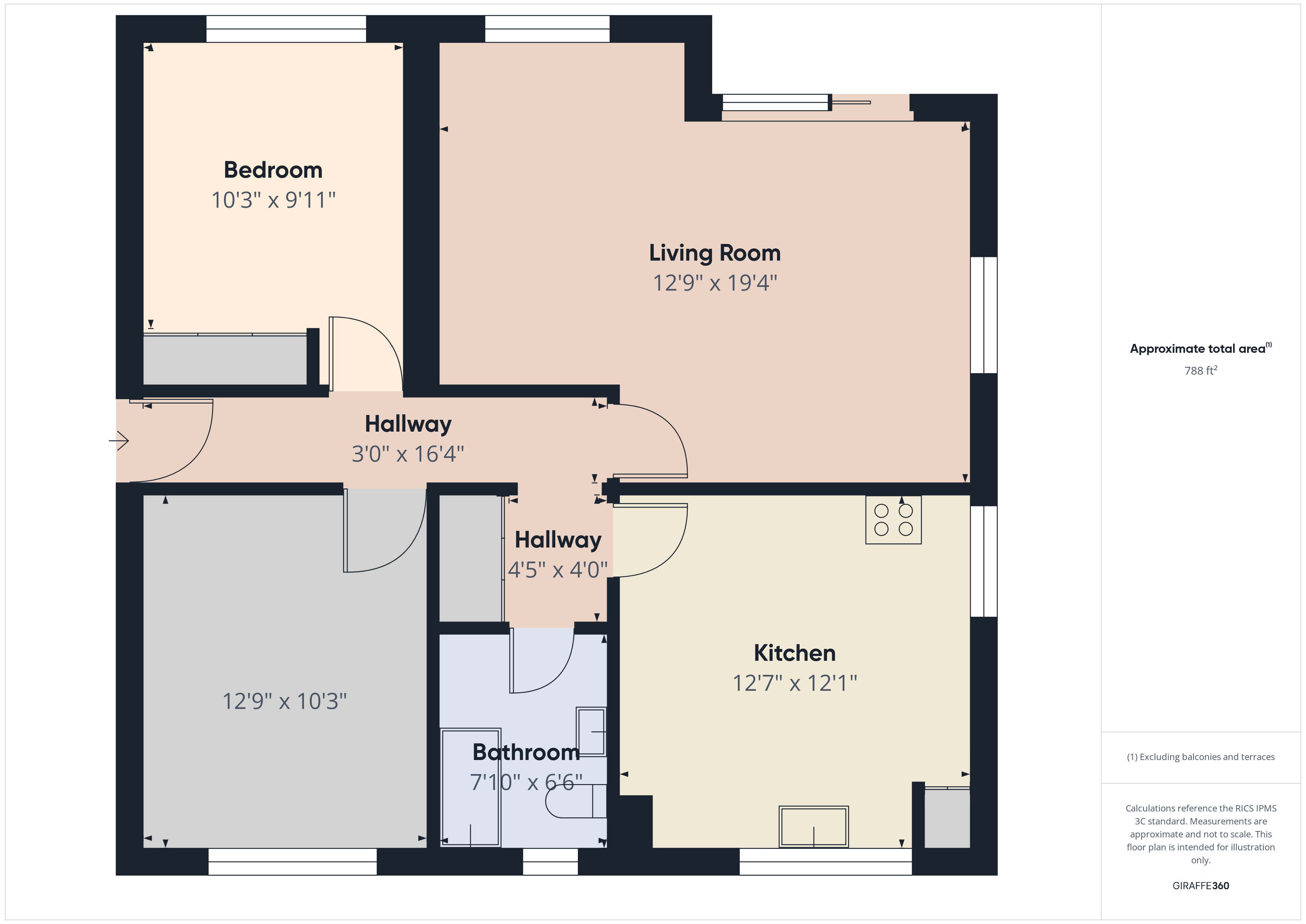 Kitchen 12' 7" x 12' 1" (3.84m x 3.68m)