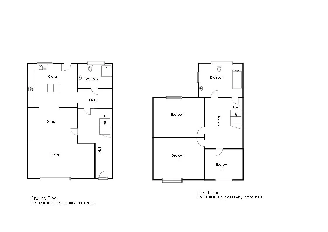 A frosted glazed timber door gives access to the utility room from the hallway or via open access from the kitchen. Space and connection for a washing machine and tumble drier. Integral fridge freezer. Hardwood flooring. Solid wood door to wet room.