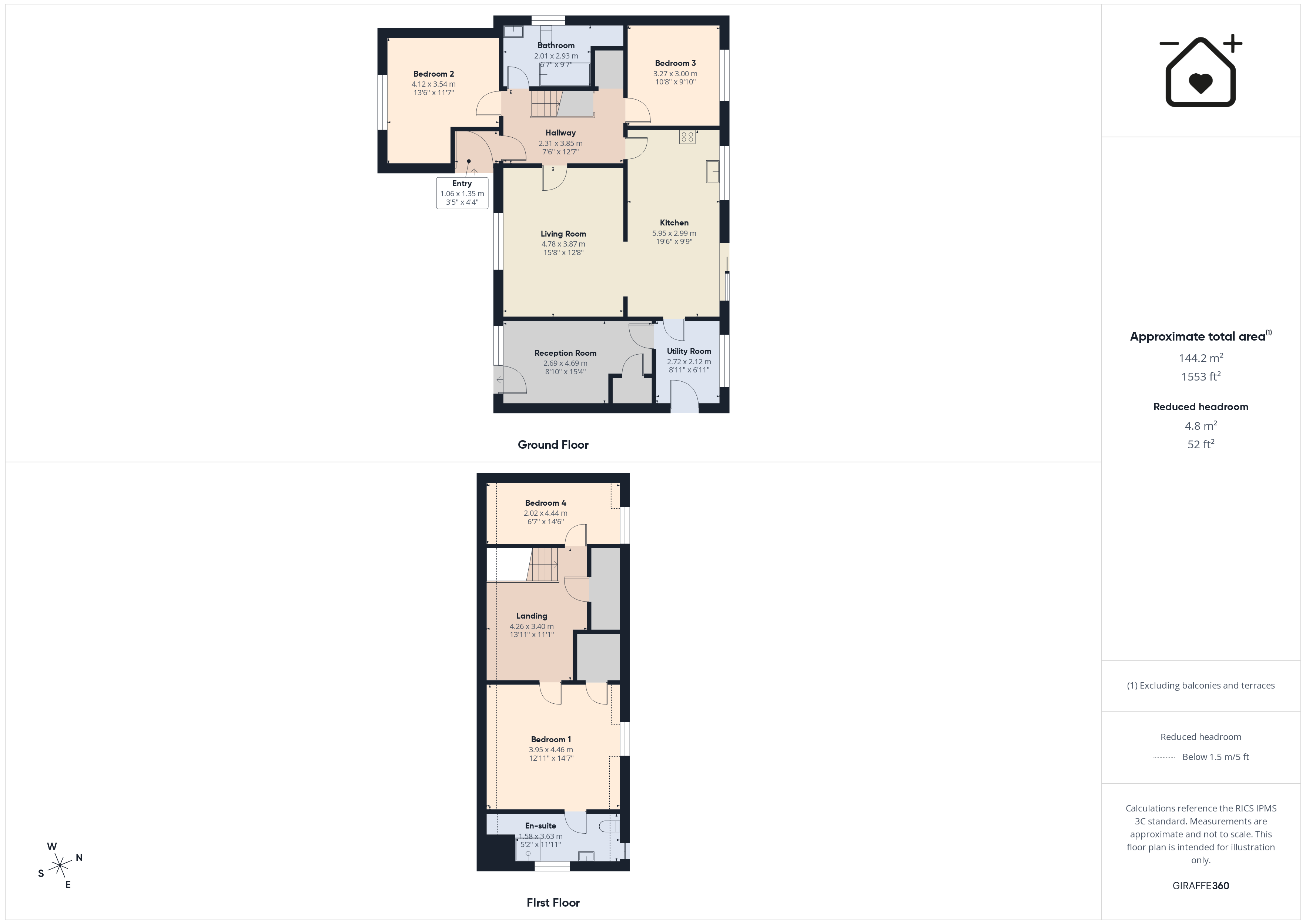 Bedroom 1 13' 0" x 14' 8" (3.95m x 4.46m)