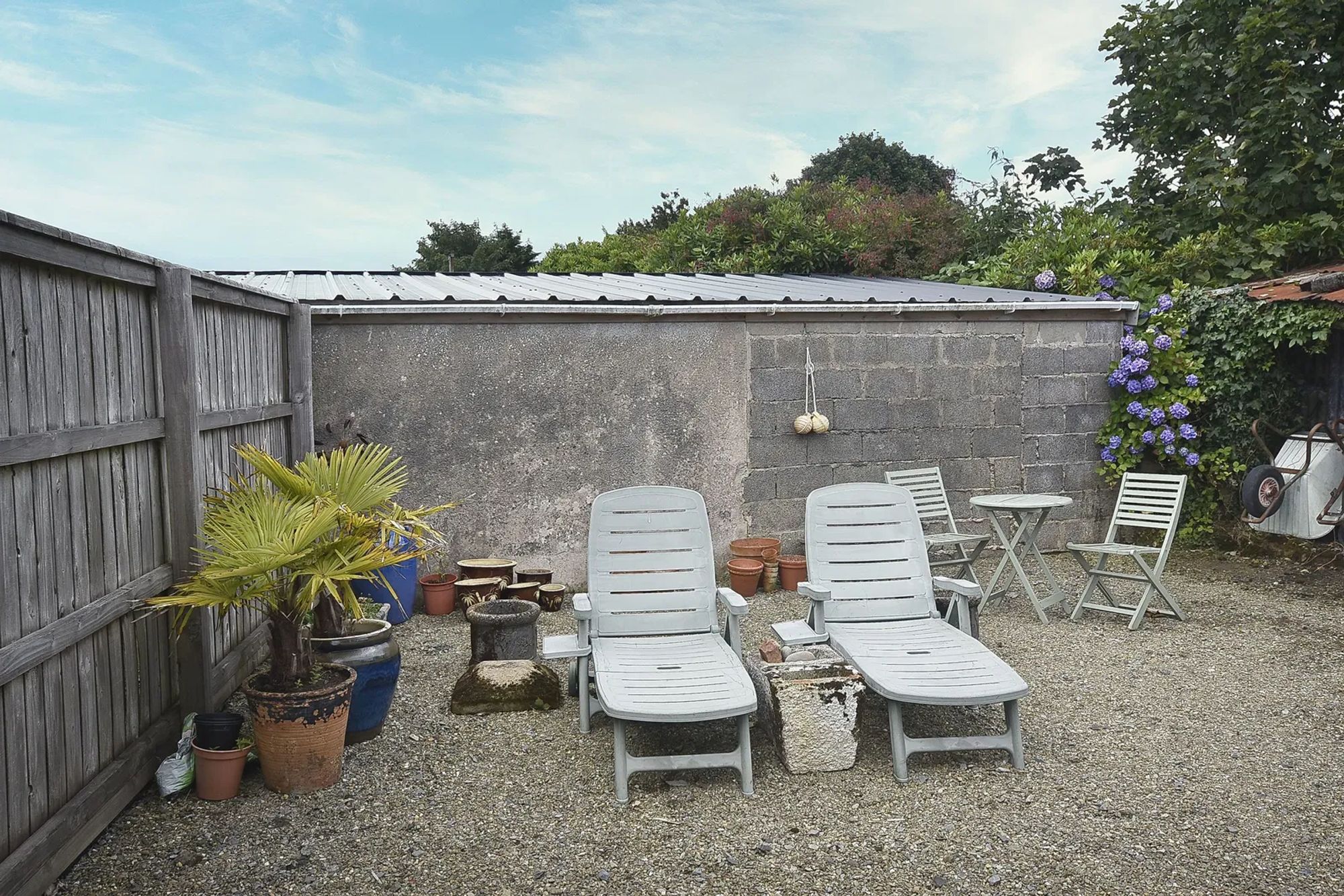 To the front a large gravelled driveway with central path to front door. Ample parking for multiple vehicles to the front and to the side of the property. To the rear a small gravelled garden and sheds adjacent to the rear bedroom.