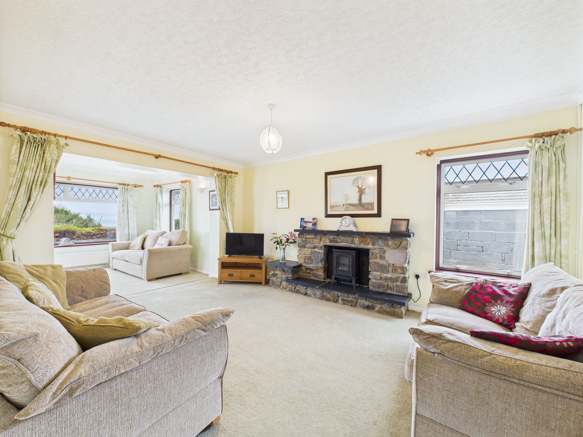 Entering the property via a convenient porch, you are greeted by a well lit hallway which connects the whole property together. Firstly, at the fore, you will find one of the large double bedrooms followed by a spacious lounge area. The lounge leads through to the rear where a second lounge provides exceptional sea views and overlooks the back garden. Following this room is the spacious kitchen/diner which, accompanied with the lounges, provide the perfect place to host social gatherings, to enjoy time with family or to simply relax and enjoy the view. A convenient utility room is adjoined to the kitchen which provides side access The property’s interior is finally finished with a large second bedroom and a wet room.