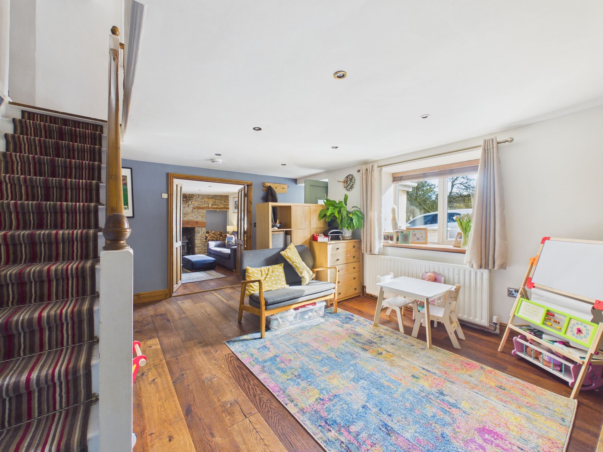 Nestled in a peaceful village setting, this charming detached four-bedroom cottage offers a perfect blend of character and modern comfort. The property is thoughtfully arranged to provide flexible family living, featuring two welcoming reception rooms that are ideal for relaxing or entertaining guests. The spacious kitchen is well-appointed, with ample storage and worktop space, making it a practical hub for every-day life. Upstairs, the property boasts four well-proportioned bedrooms, including a master suite complete with its own en suite shower room. A stylish family bathroom serves the remaining bedrooms, ensuring convenience for all. Throughout the cottage, tasteful décor and period features create a warm and inviting atmosphere, while double-glazed windows and efficient heating help maintain year-round comfort. With two separate driveways and a detached garage, there is plentiful parking and storage for vehicles, bikes, or outdoor equipment.