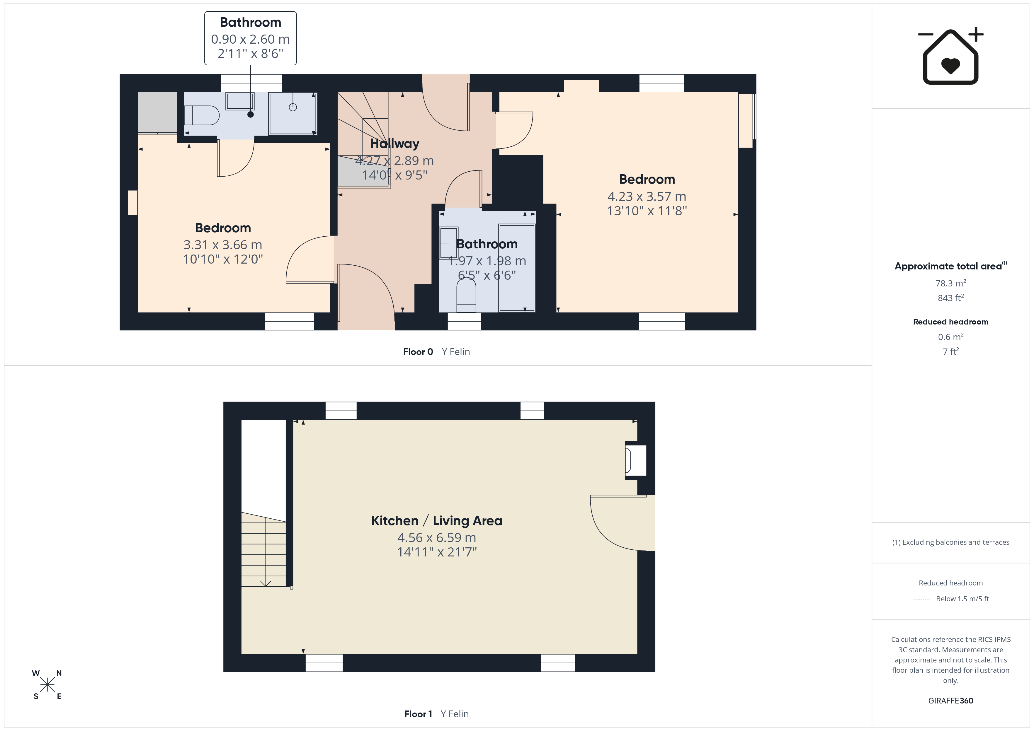 Bathroom (Y Felin) 6' 6" x 6' 6" (1.98m x 1.97m)