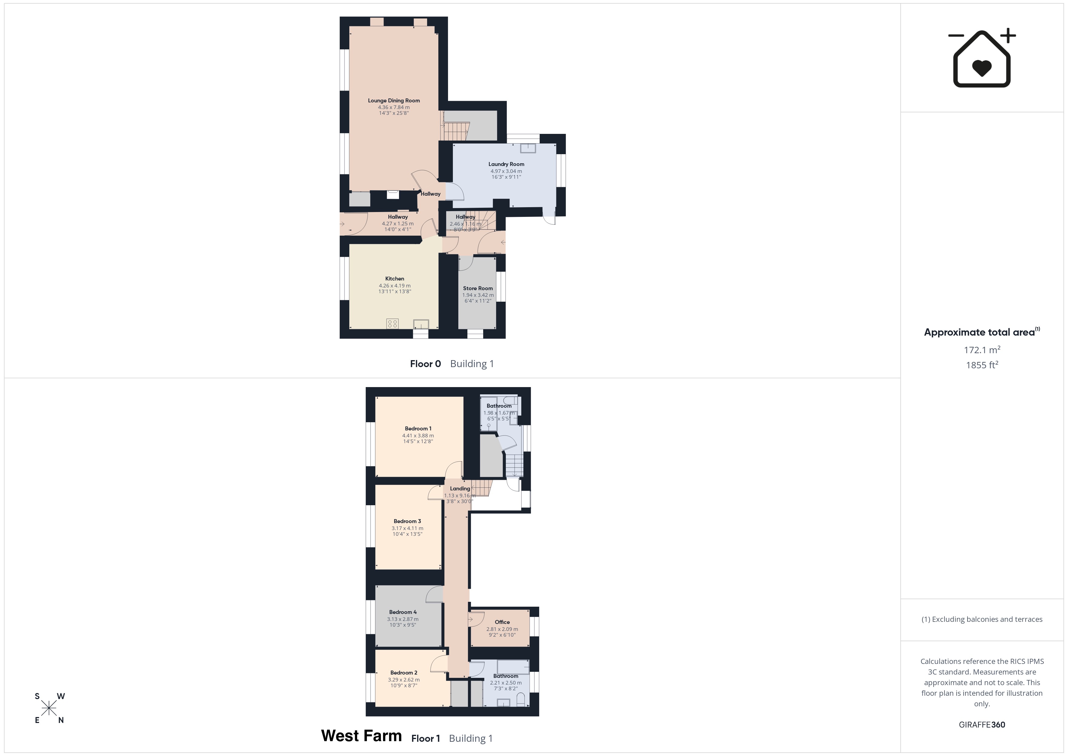 Bedroom 1 (West Farm) 14' 6" x 12' 9" (4.41m x 3.88m)