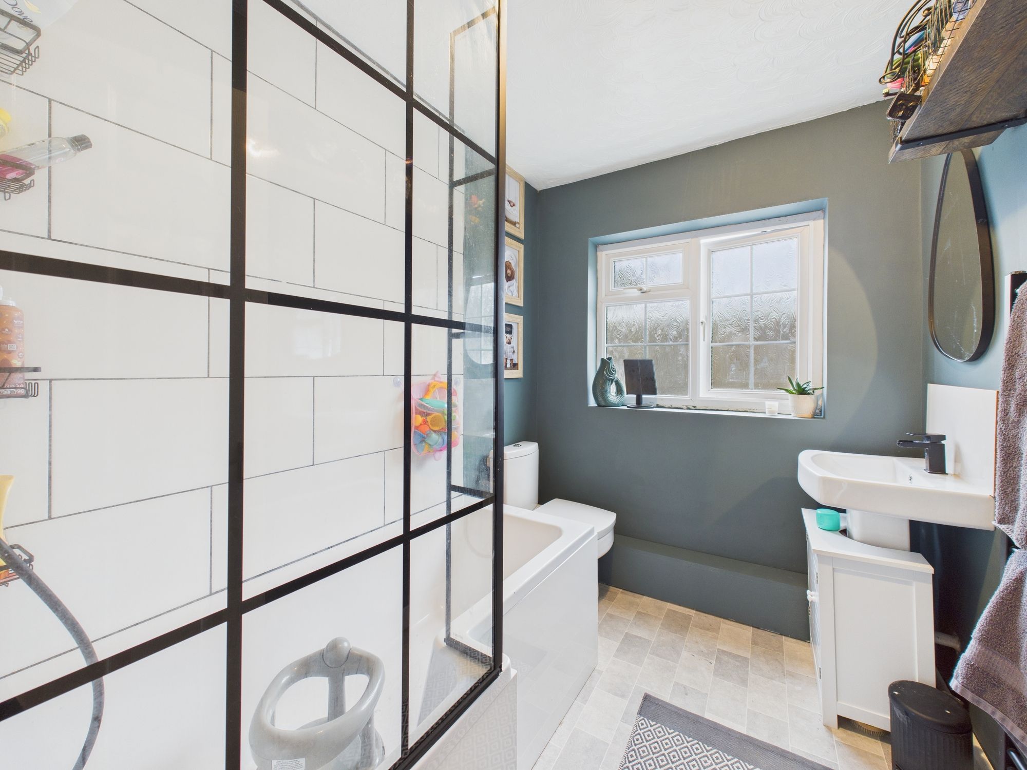 The family bathroom is tastefully finished with contemporary fixtures and fittings, providing a relaxing environment for daily routines. The overall layout of the home has been carefully considered to maximise space and flow, making it ideal for both every-day living and entertaining.