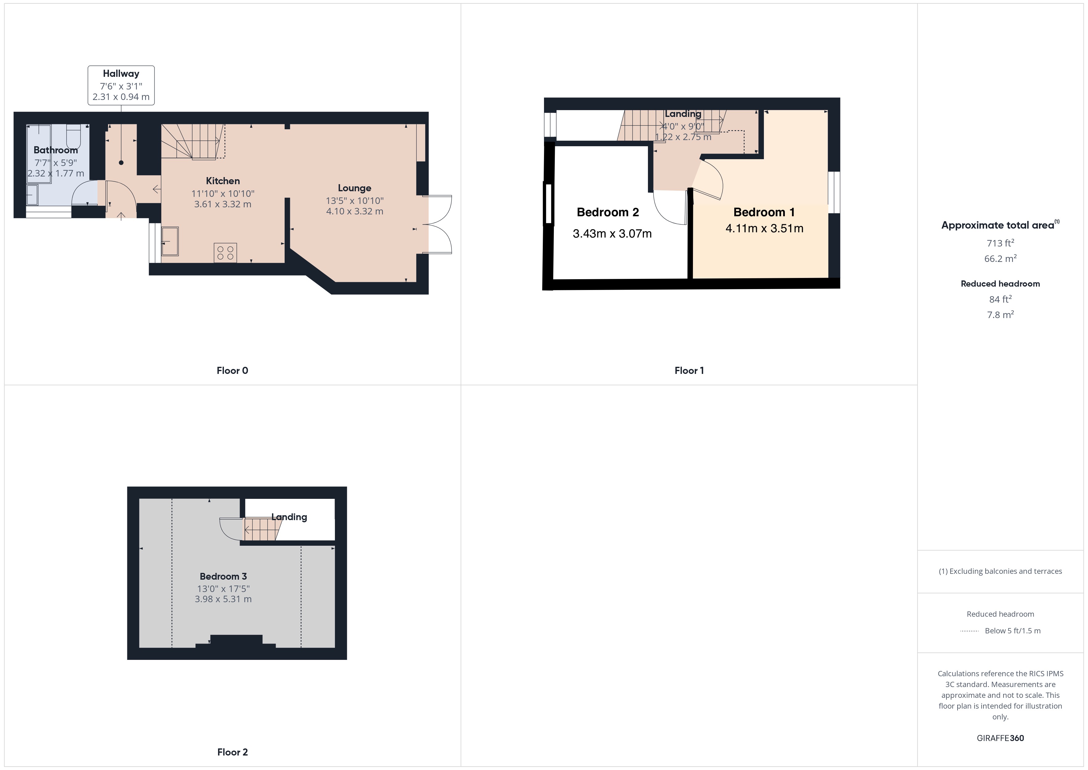 Hallway 7' 7" x 3' 3" (2.31m x 1.00m)