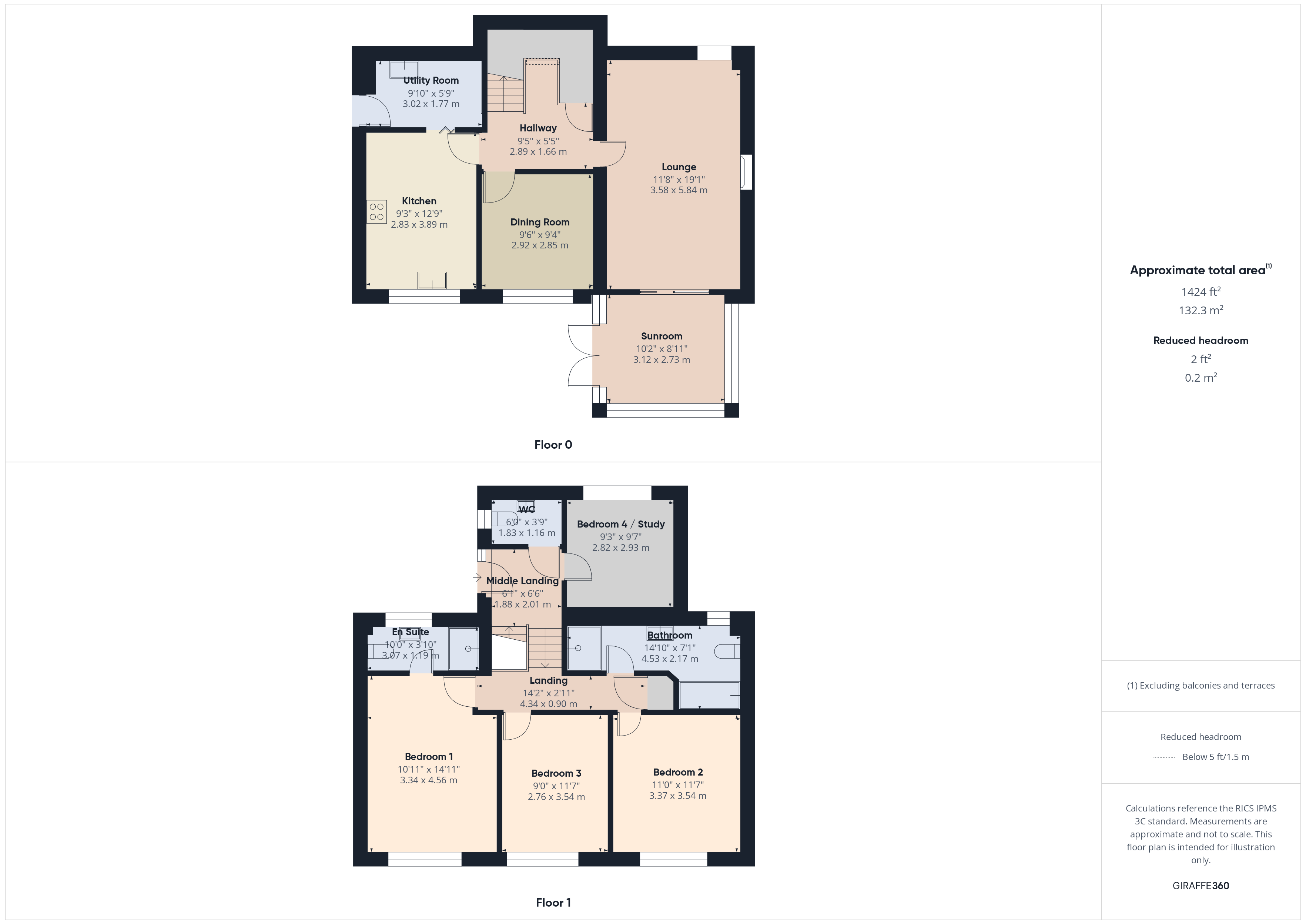 Bedroom 4 / Office 9' 7" x 9' 4" (2.93m x 2.84m)