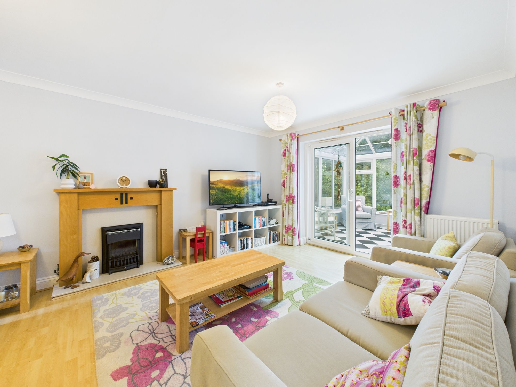 Sliding glazed doors to rear giving access to conservatory. Gas coal effect fire with marble hearth and surround and wooden mantel. Laminate flooring. Window to the front.