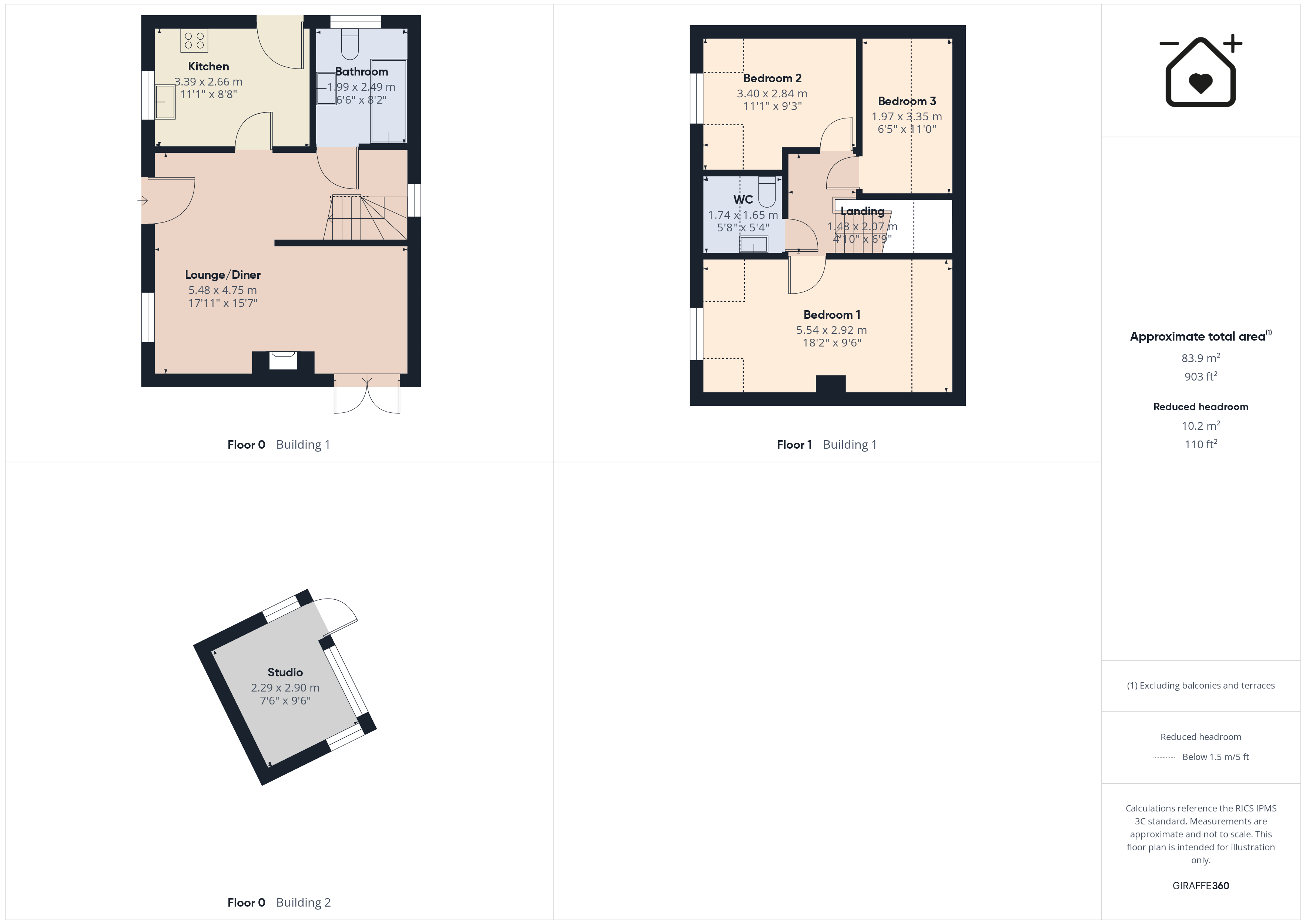Studio 7' 6" x 9' 6" (2.29m x 2.90m)
