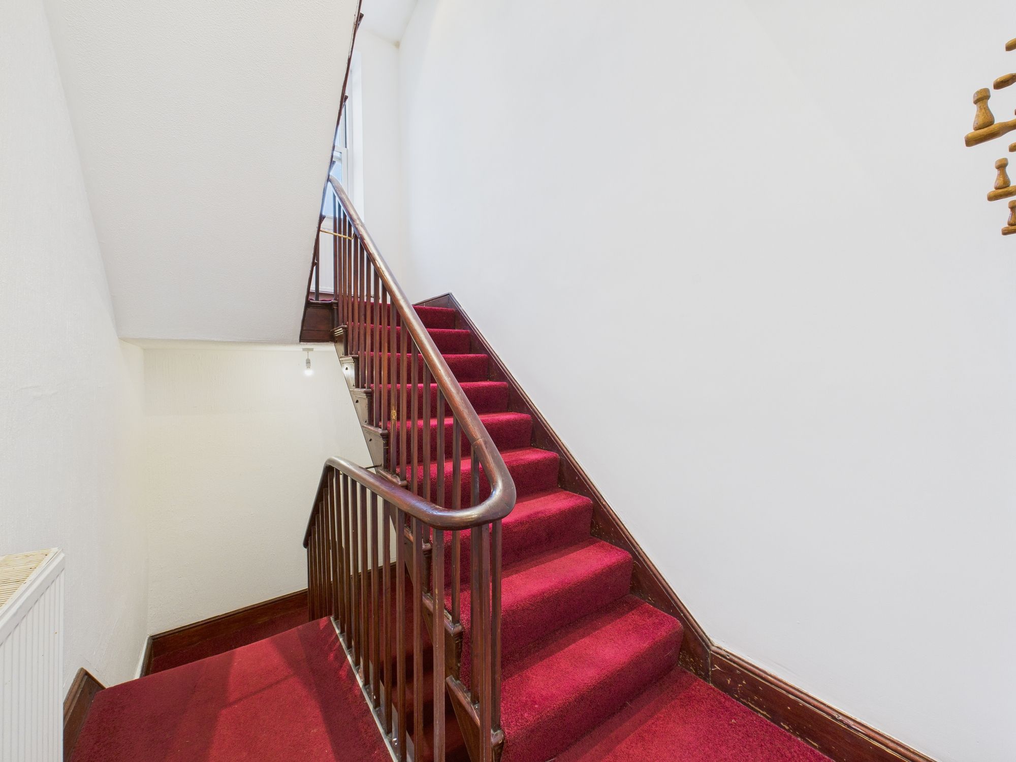 Enter through the security door to the original sweeping staircase up to the First Floor Maisonette.