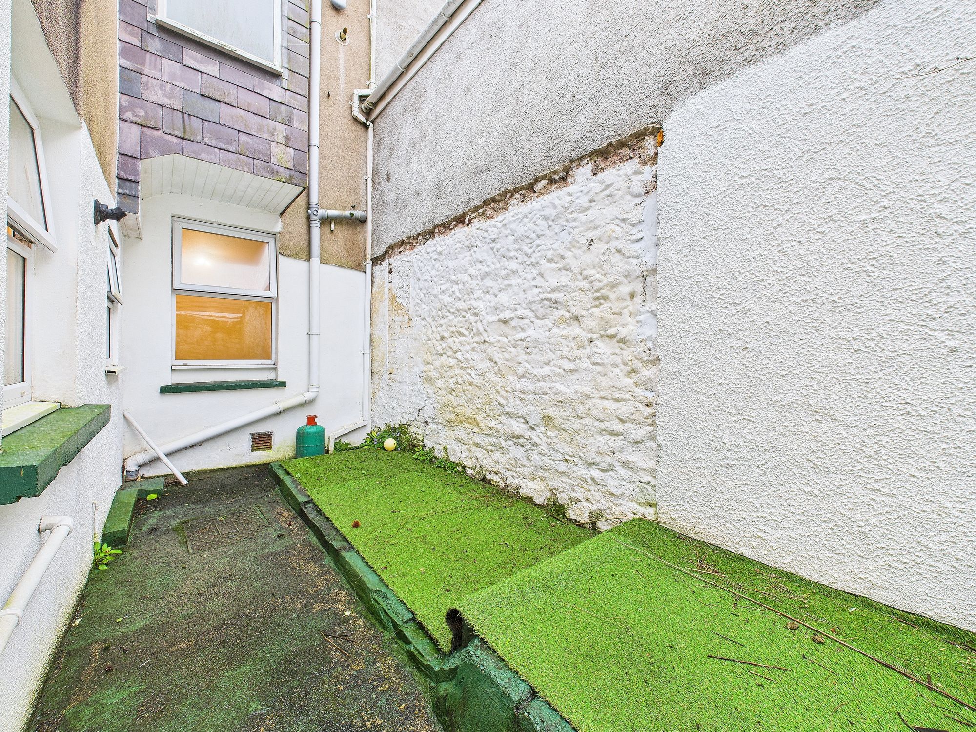 Semi-glazed door giving access to the rear courtyard garden. Door to Shower Room. Tiled floor.