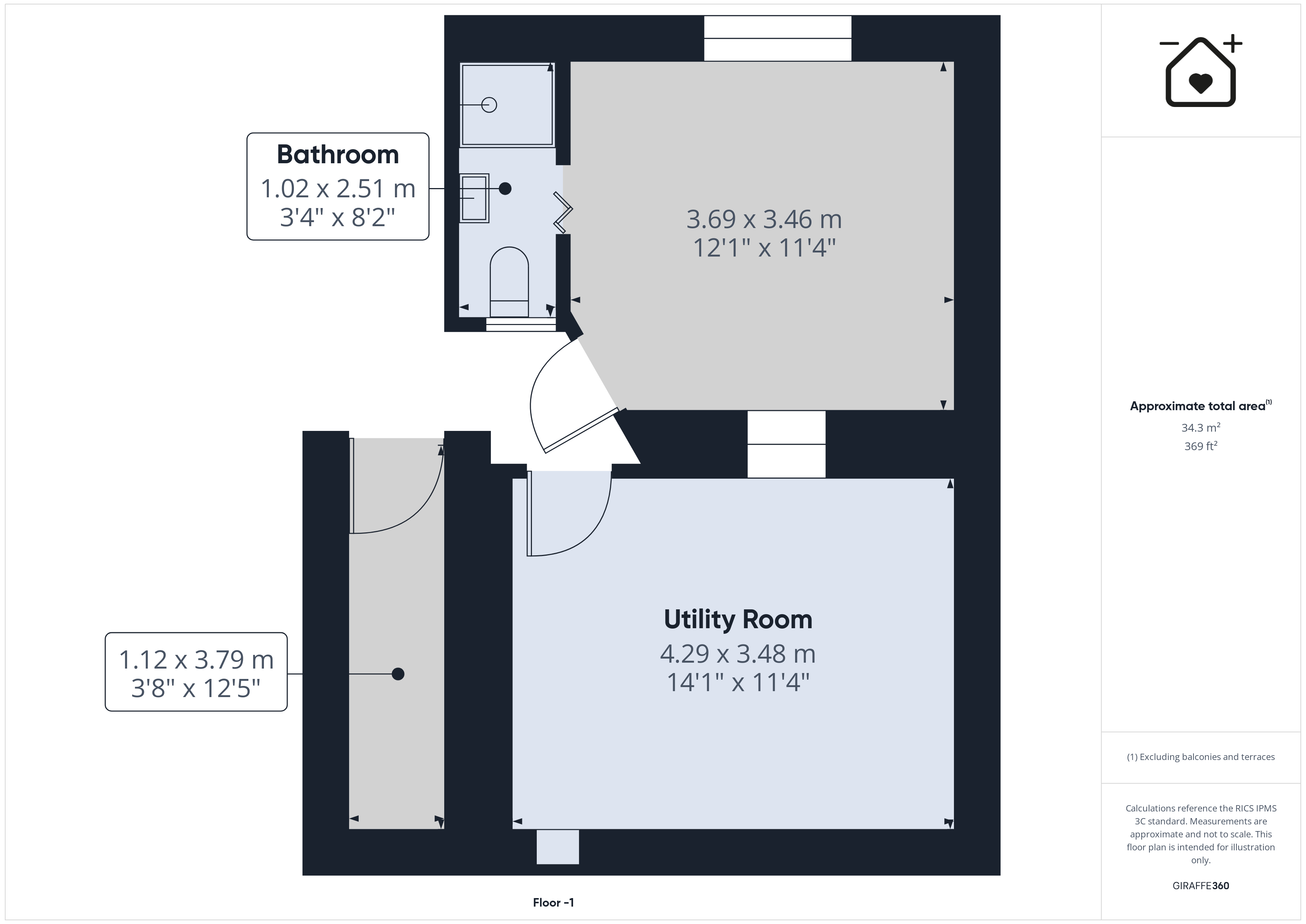 Store Room 3' 8" x 12' 5" (1.12m x 3.79m)