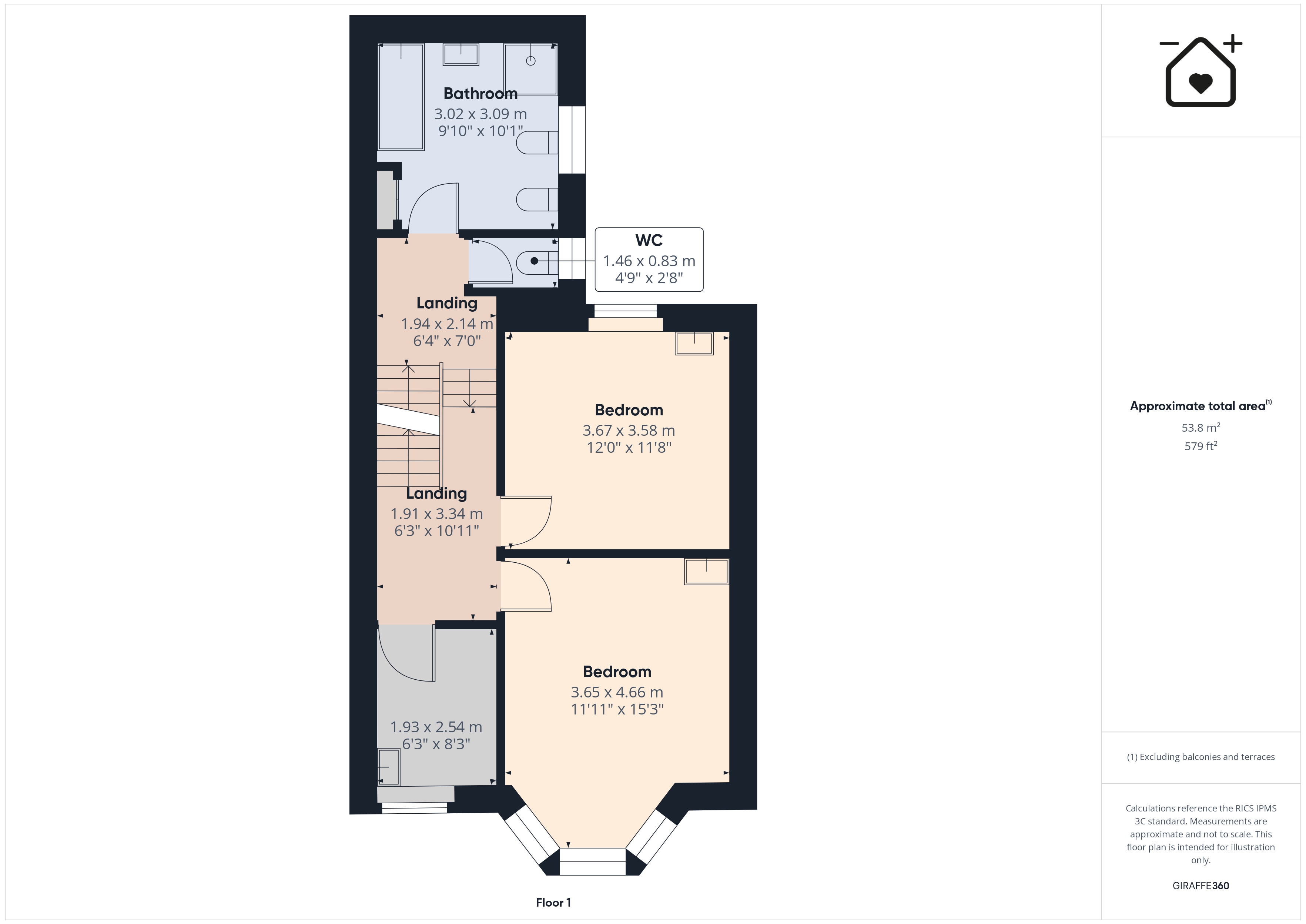 WC 4' 9" x 2' 9" (1.46m x 0.85m)