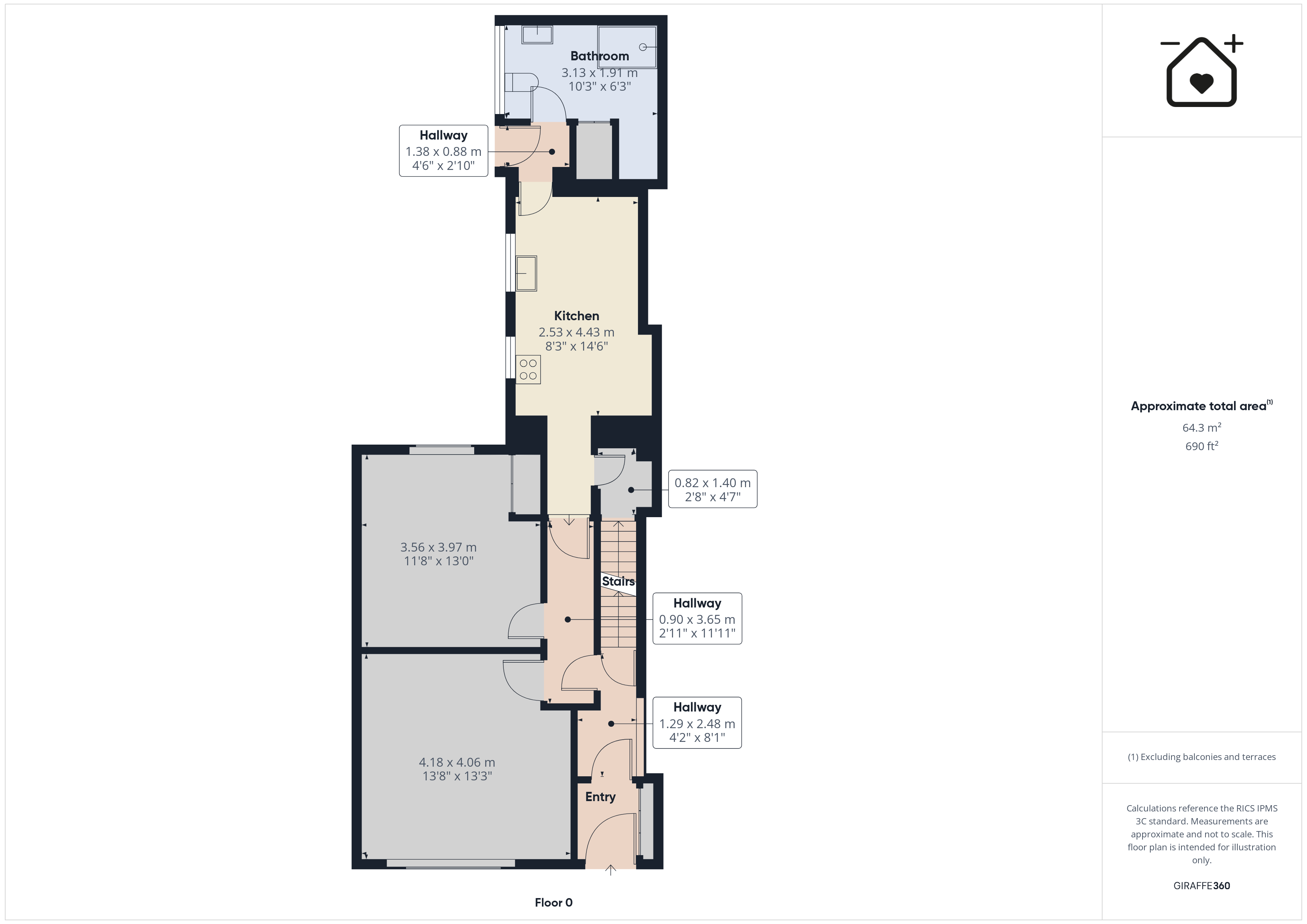 L shape Hall. Doors to all rooms. Window to rear. Stairs to Loft Room.