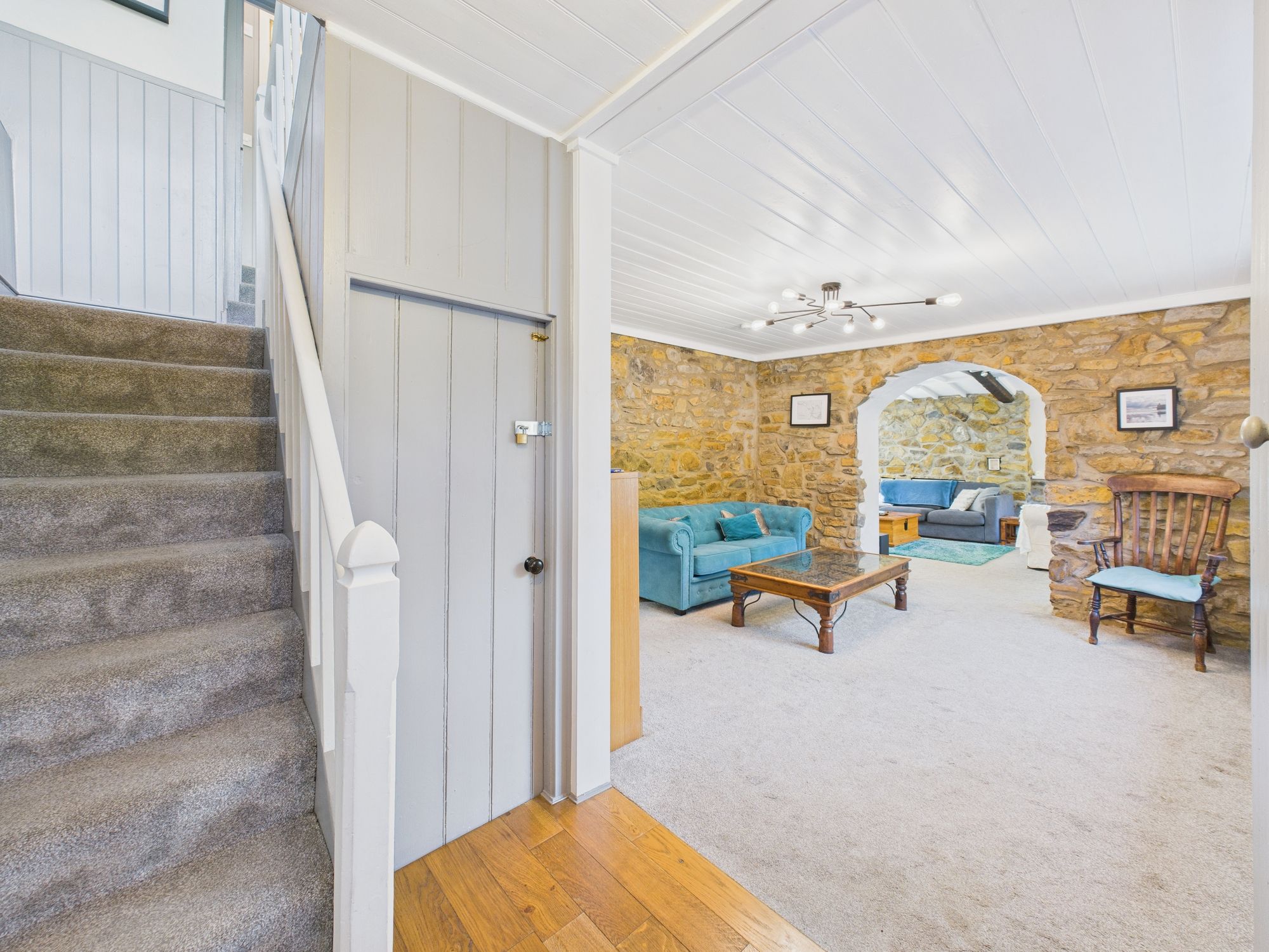 Enter through glazed uPVC door with fanlight above. Opening to Living Room. Door to Kitchen/Dining Room. Stairs to First Floor with large cupboard under. Oak flooring.